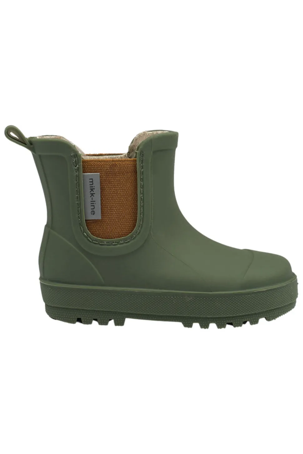 Mikk-line korte vinter gummistøvler er lavet med fleksible barfodssåler, naturlig gummi og fri for ftalater. Gummistøvlerne er specielt designet til de små, da det er nemmere for dem at gå, sidde og lege uden lange støvleskafter. Disse ensfarvede ankelgummistøvler er vandtætte og praktiske til børn, der elsker at springe i vandpytter eller gå på vådt græs.