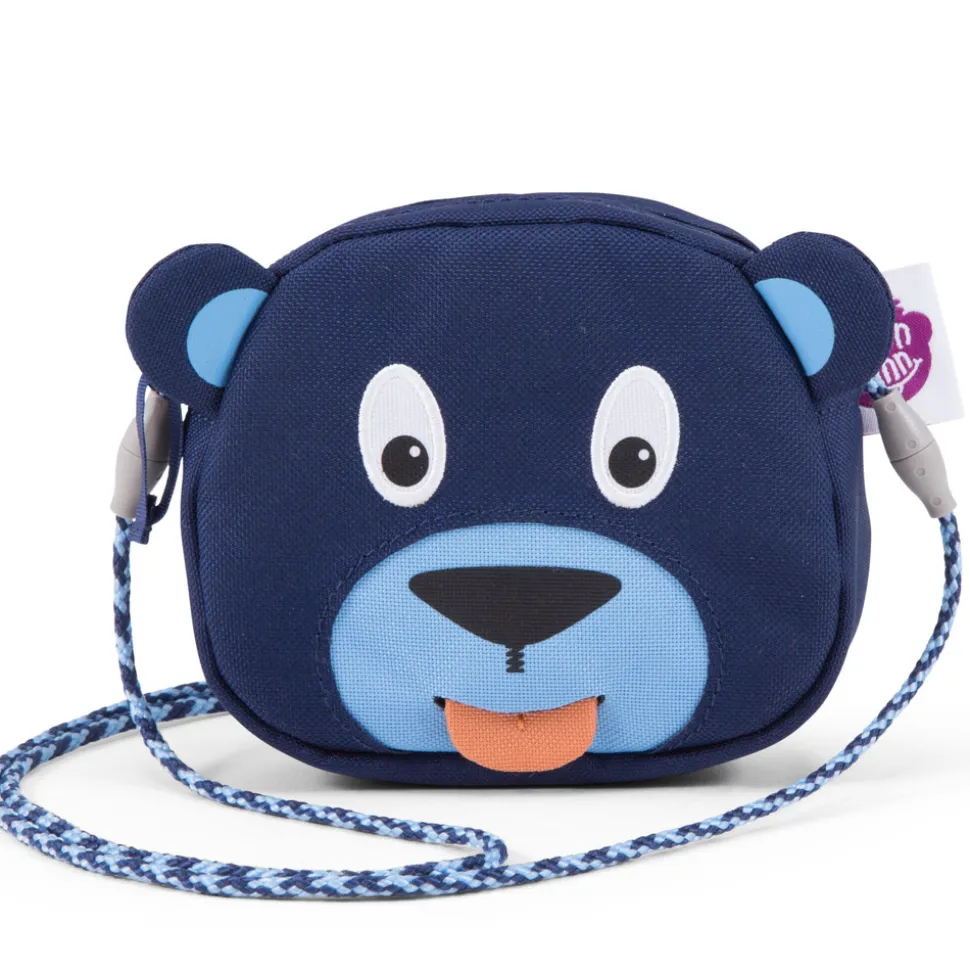 Affenzahn-pungen med navneskilt på den udtrækbare tunge med. Har sikkerhedskliklås på snoren og er nem at bære for de små eventyrer.