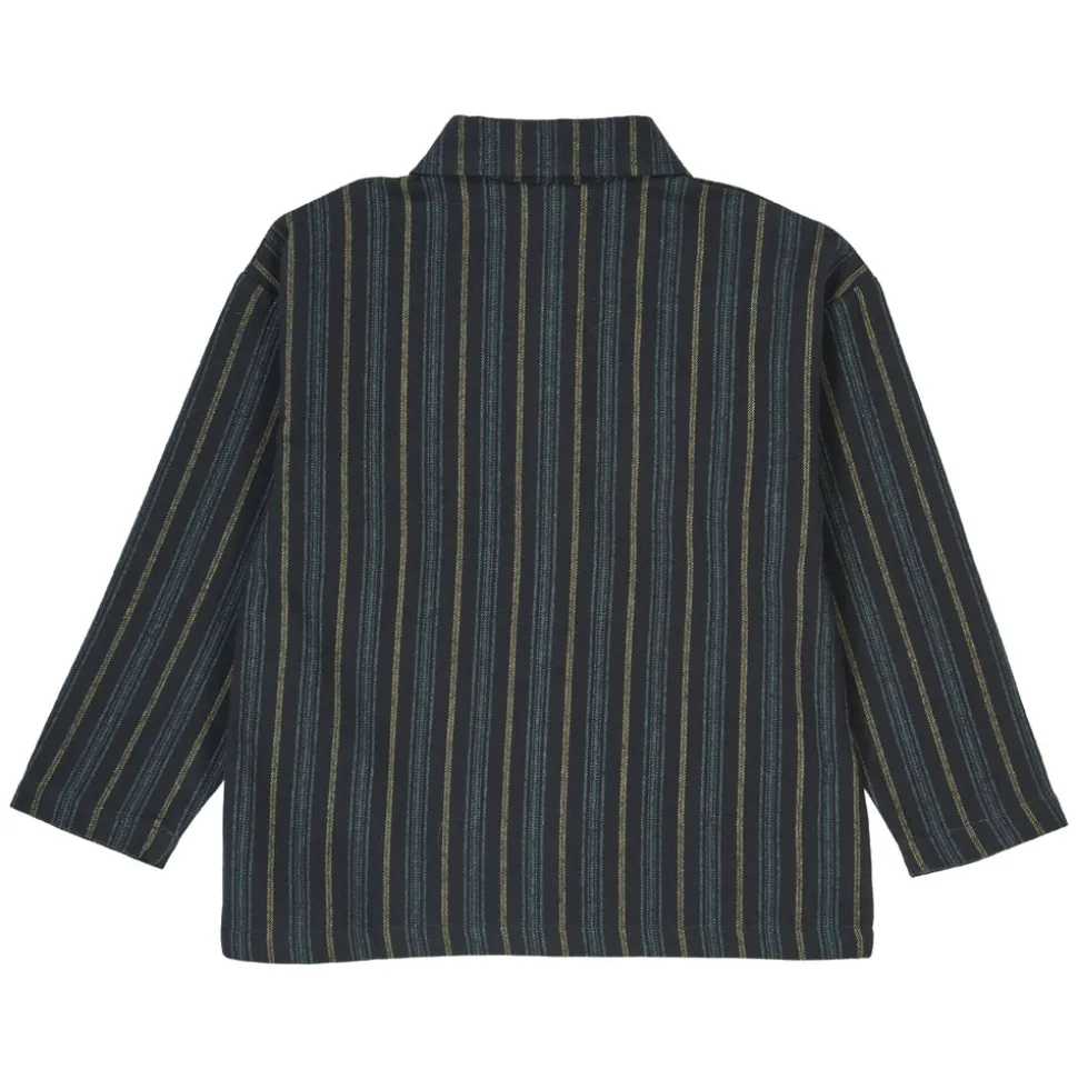 En smart og tidløs skjorte med flotte striber i blå og grønne nuancer, der giver et friskt og stilrent udtryk. Skjorten har et klassisk design med krave, gennemgående knaplukning og en stor, firkantet brystlomme, som tilføjer et moderne twist.