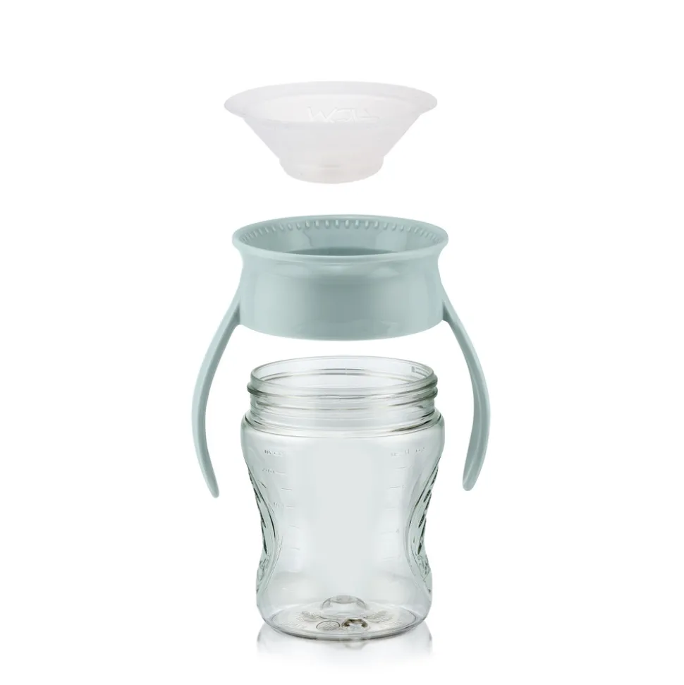 Slip for spild af drikkevarer ved spisebordet, i sofaen, i bilen, i sengen og mange andre steder. Samtidig er koppen også super praktisk på skovturen, skituren og på stranden. Koppen forhindrer insekter i at komme i berøring med drikkevarerne. Koppen består af 3 dele, som er let at adskille og samle, og alle dele kan naturligvis rengøres i opvaskemaskine. Koppen har en 360° drikkekant, der er forseglet med en blød silicone ventil, som åbnes ved overlæbens berøring, samtidig med at man suger ganske let. WOW Cup er beregnet til kolde og forfriskende drikke og indeholder op til 207 ml. WOW Cup er for børn i fra 9 måneder, og er naturligvis 100% fri for BPA og Phthalater.
