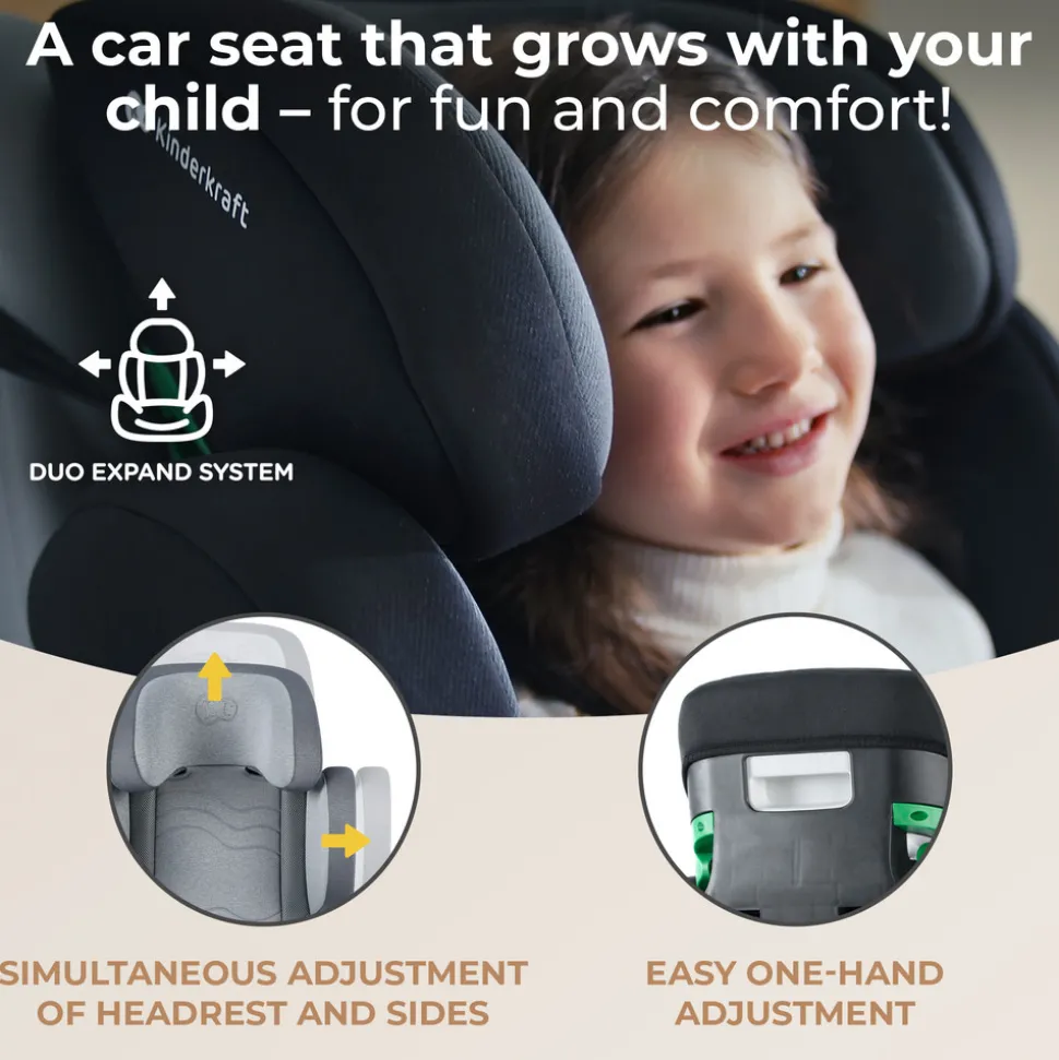 XPAND 2 i-Size – autostol, er udført i overensstemmelse med den nyeste sikkerhedsstandard R129 i-Size, til børn mellem 100-150 cm i højde (ca. 3,5-12 år). Det er et produkt, hvor udtrykket ,,vokser med barnet” får ny betydning. Takket være Duo Expand system, kan autostolens højde og bredde justeres samtidigt og tilpasses til det voksende barn.