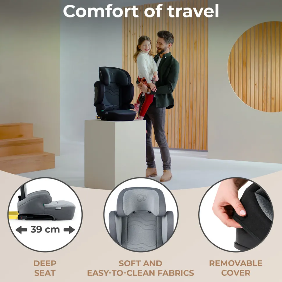 XPAND 2 i-Size har et bredt og blødt sæde. Takket være justeringen og memory skum garanterer autostolen sikker og behagelig rejse i mange år –både på korte og lange ture.