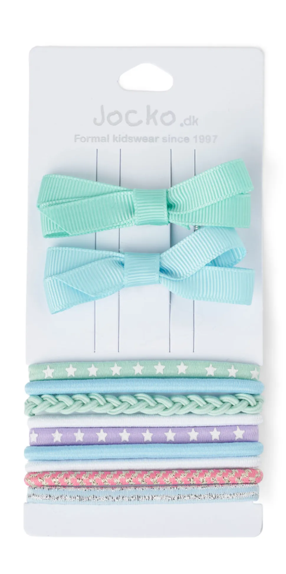 Kombi mix farvet hårpyntspakke med 2 hårspænde og 9 hår-elastikker