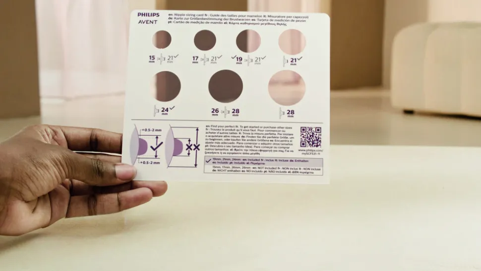 Da alle mødre er forskellige, sikrer disse 26 mm og 28 mm brystskjoldindsatser en behagelig og sikker pasform for mindre brystvorter. Til brug med Philips Avent Hands-Free opsamlingskopper. Efterligner barnets drikkerytme og former sig blødt efter dine bryster.