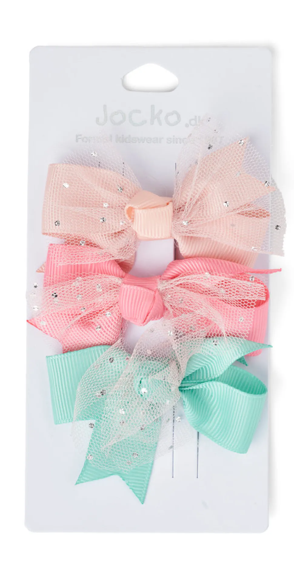 3 fine pynte spænder i melon, rosa og grøn