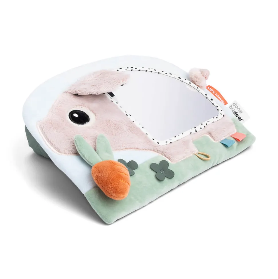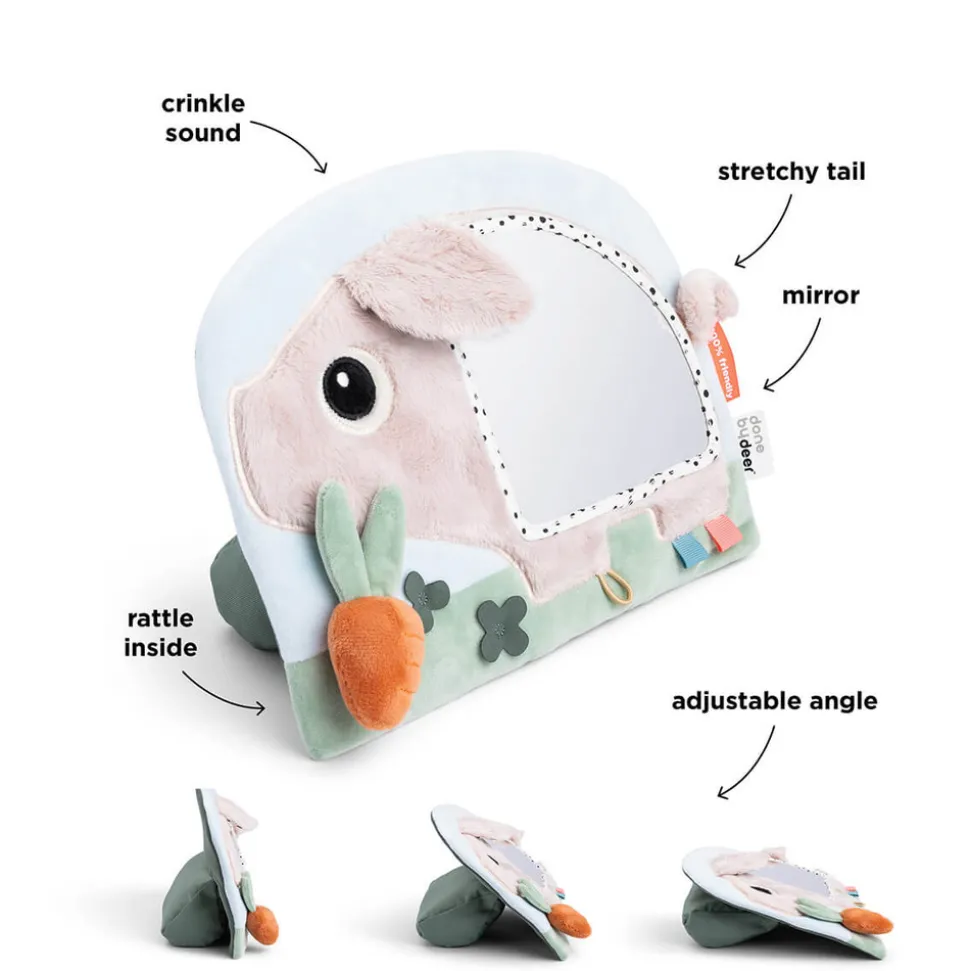 Stimulerende og sjovt legetøj til din baby, der fremmer udviklingen. Med elementer som en rangle, knitren og forskellige teksturer vil dit barns hørelse og taktile sans blive stimuleret. Du kan justere spejlets vinkel, så det passer til dit barns udviklingstrin, hvilket gør det ideelt til forskellige stadier.