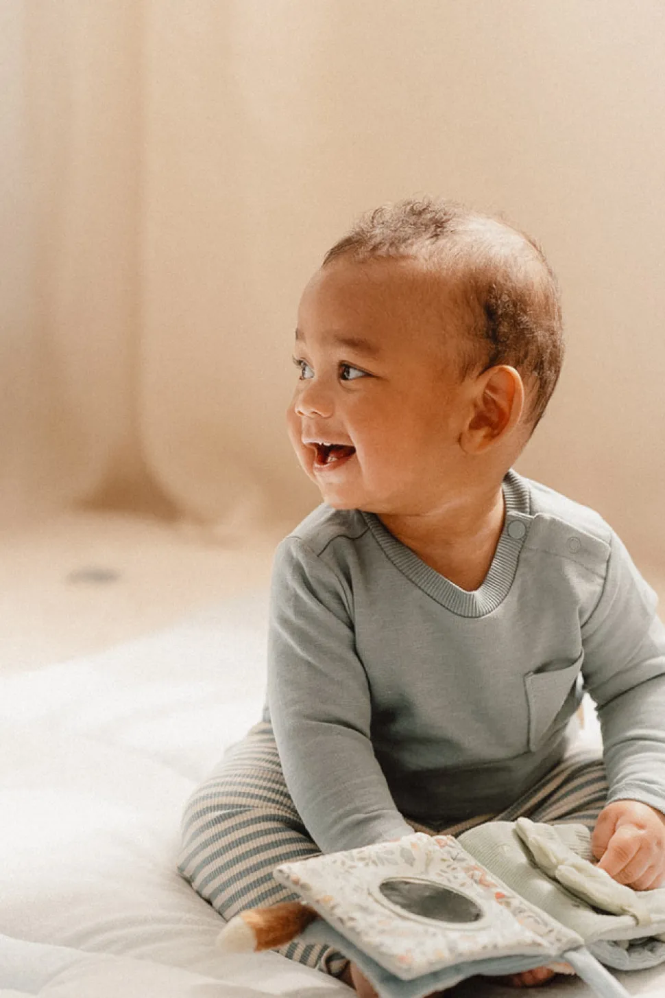 Kig ind i Forest Friends fortryllende verden! Denne aktivitetsbog vil helt sikkert blive en kær følgesvend. Med spændende etiketter, krøllede teksturer og et spejl er denne designet til at fange dit barns sanser side for side. Sæt blot løkken fast på barnevognen for at holde den sikkert på plads under jeres udflugter.