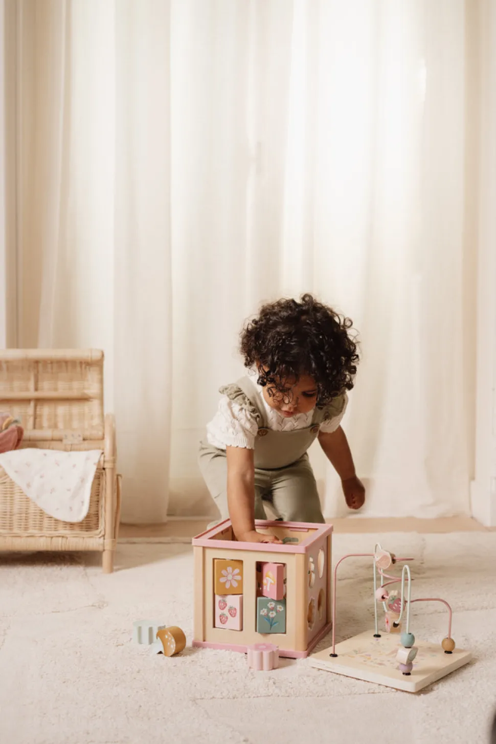 Tag på eventyr og udforsk alle sider af denne underholdende aktivitetsterning. Hver side har dejlige Fairy Garden illustrationer og præsenterer en ny og sjov læringsaktivitet, herunder en formsortering, roterende tandhjul, puslespil og en udfordrende perlelabyrint på toppen. Gennem hver engagerende opgave vil dit barn forbedre sine finmotoriske færdigheder og blive inspireret til at slippe sin kreativitet løs. Denne aktivitetsterning stimulerer ikke kun børns nysgerrighed, men sikrer også timevis af legende opdagelser.