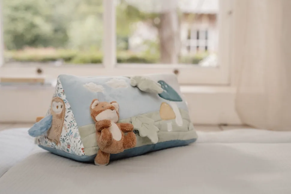Den store aktivitetstrekant er fyldt med søde og sjove aktiviteter der kan stimulerer og aktiverer din lille. Det bløde materiale føles fantastik for at røre og de forskellige aktiviteter styrker hånd-øje koordinationen. Der er så meget at røre, føle og gribe fat i at den aldrig bliver kedelig.