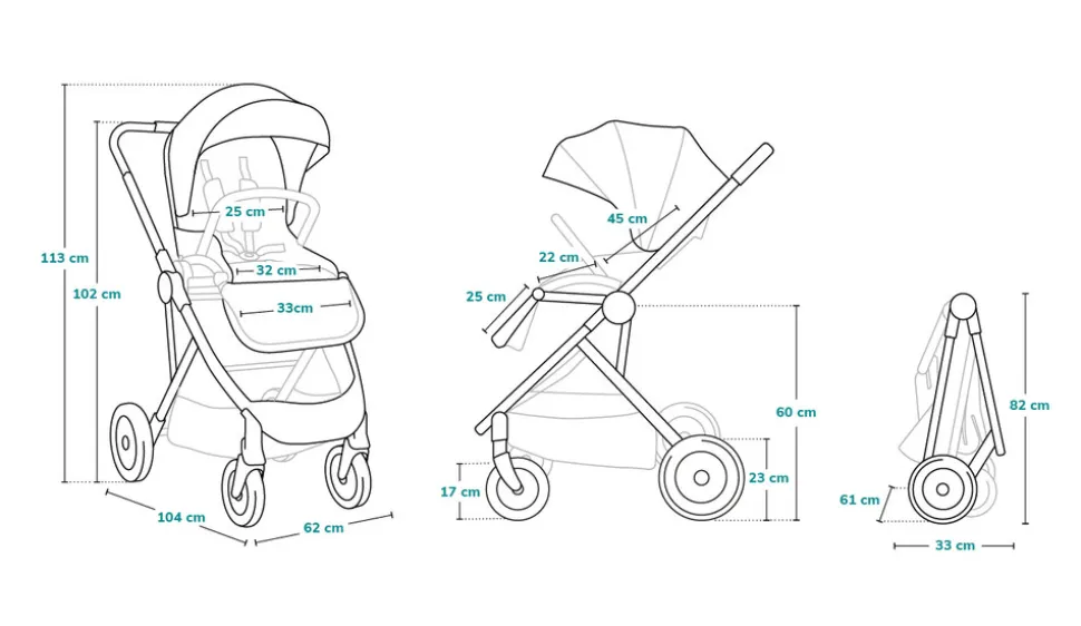 Tilbehør inkluderet: forlæder, myggenet, regnslag, pusletaske, puslemåtte og adaptere.