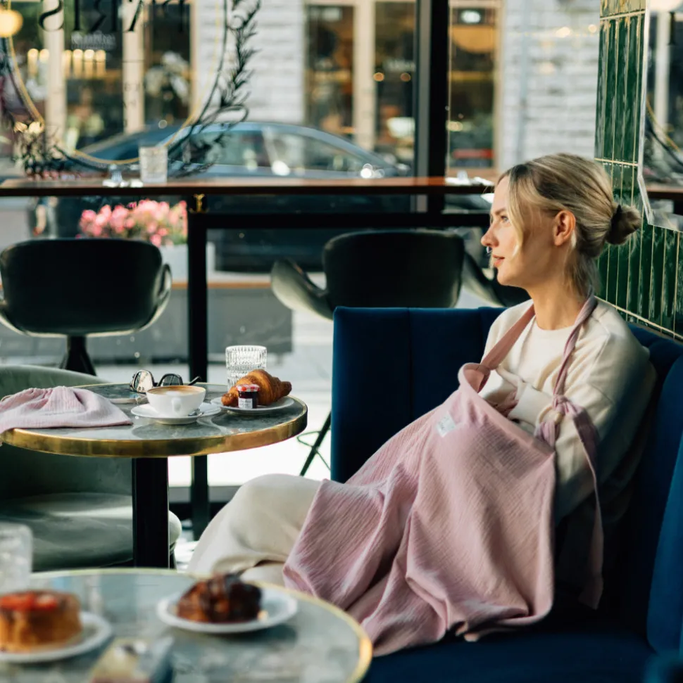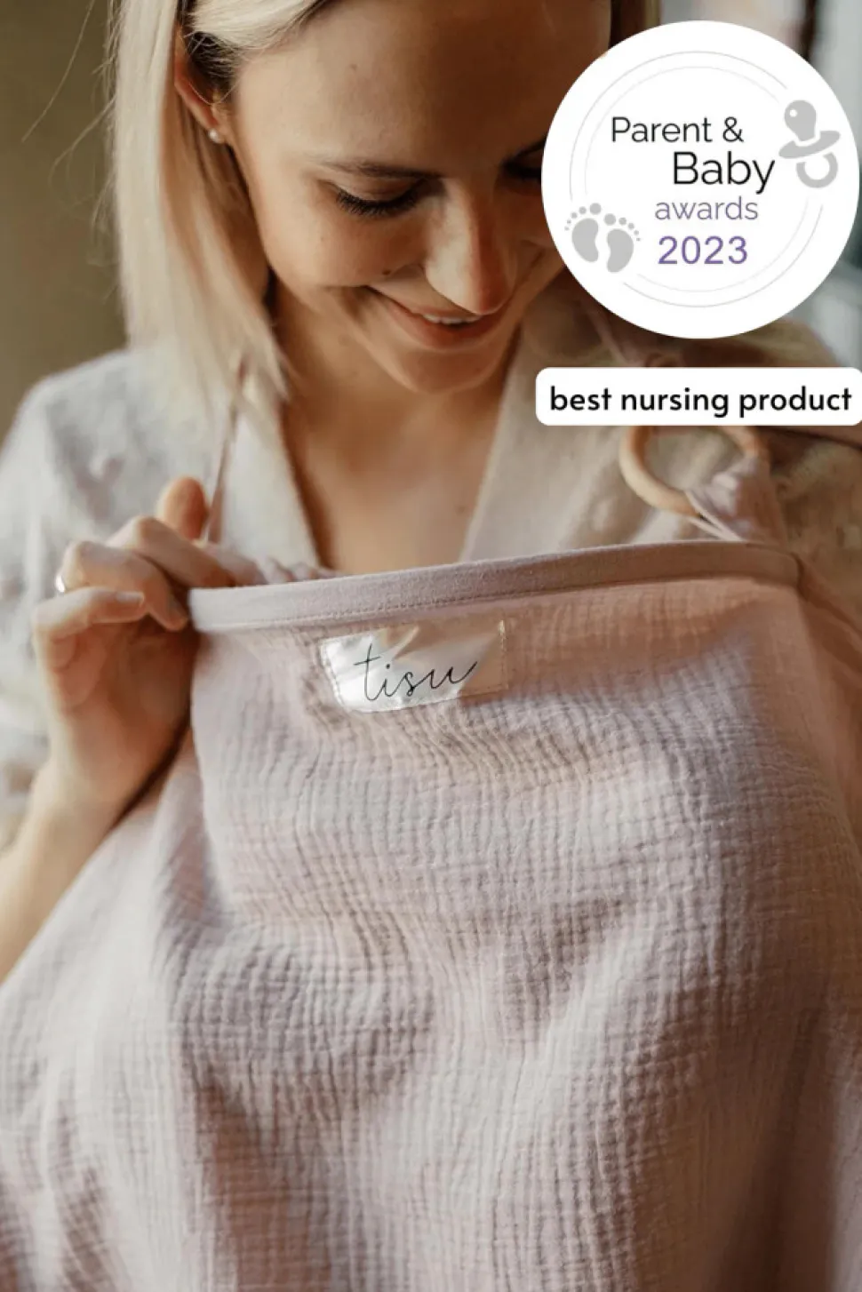 TISU ammesvøb giver mødre en bedre mulighed for at amme hvor som helst når de er på farten – butikker, caféer, ja alle steder. TISU ammesvøb hjælper dig med at skabe en behagelig og privat atmosfære, mens du ammer; for dig og din baby. Bare tag ammesvøbet over dit hoved, og du er klar til at begynde at amme! TISU ammesvøb er et førsteklasses produkt lavet af let vaskbart 100% musselinbomuldsstof og designet til at være let og åndbart. Stor halsudskæring giver dig direkte øjenkontakt med din elskede baby, så han eller hun altid kan se dig smile!Opbevar dit TISU ammebetræk med den matchende pose i en pusletaske, eller fastgør det til vognen for at have det med dig på farten!