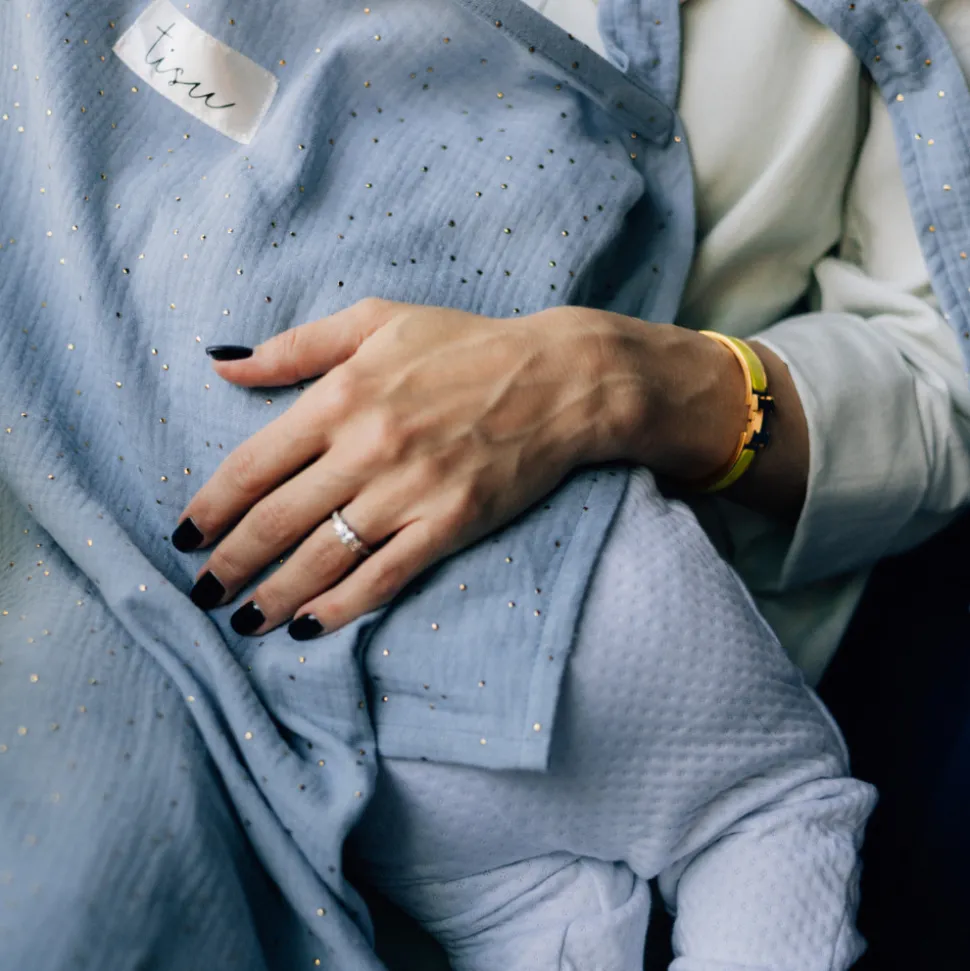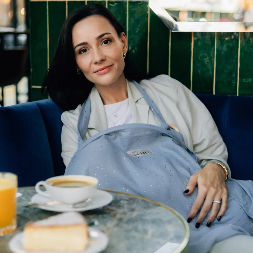 TISU ammesvøb giver mødre en bedre mulighed for at amme hvor som helst når de er på farten – butikker, caféer, ja alle steder. TISU ammesvøb hjælper dig med at skabe en behagelig og privat atmosfære, mens du ammer; for dig og din baby. Bare tag ammesvøbet over dit hoved, og du er klar til at begynde at amme! TISU ammesvøb er et førsteklasses produkt lavet af let vaskbart 100% musselinbomuldsstof og designet til at være let og åndbart. Stor halsudskæring giver dig direkte øjenkontakt med din elskede baby, så han eller hun altid kan se dig smile!Opbevar dit TISU ammebetræk med den matchende pose i en pusletaske, eller fastgør det til vognen for at have det med dig på farten!