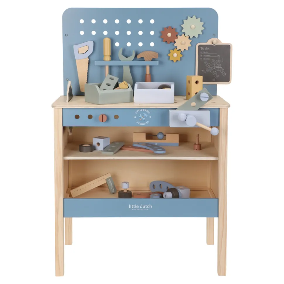 Se her små handymen og handywomen! Med denne robuste arbejdsbænk i træ kan børnene hamre, skrue og bygge, hvad de vil. Uanset om det er en sej bil eller deres egen kreative konstruktion – alt er muligt! Sættet indeholder forskellige værktøjer, f.eks. en rundsav, og opfordrer til rolleleg, motoriske færdigheder og kreativitet. Er du klar til at gå i gang?
