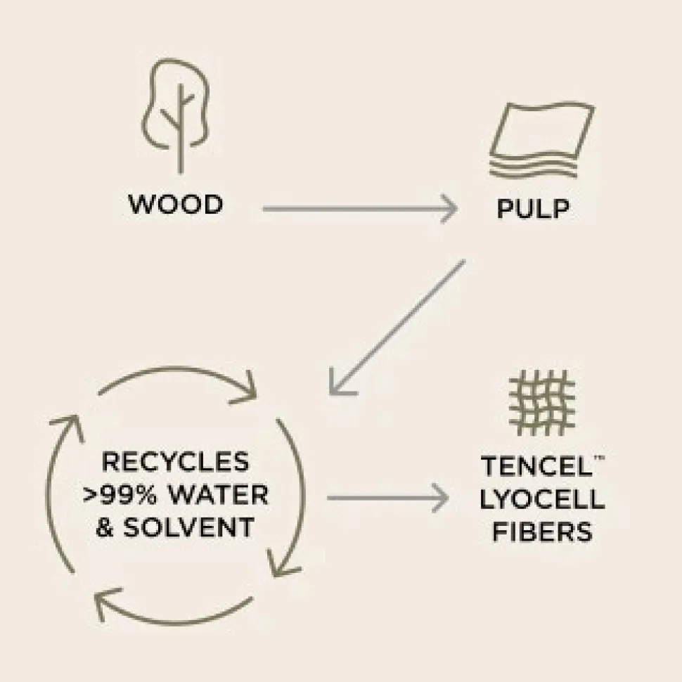 Tencel™ Lyocell-fibre er fremstillet af produceret træ og certificeret biologisk nedbrydeligt.
