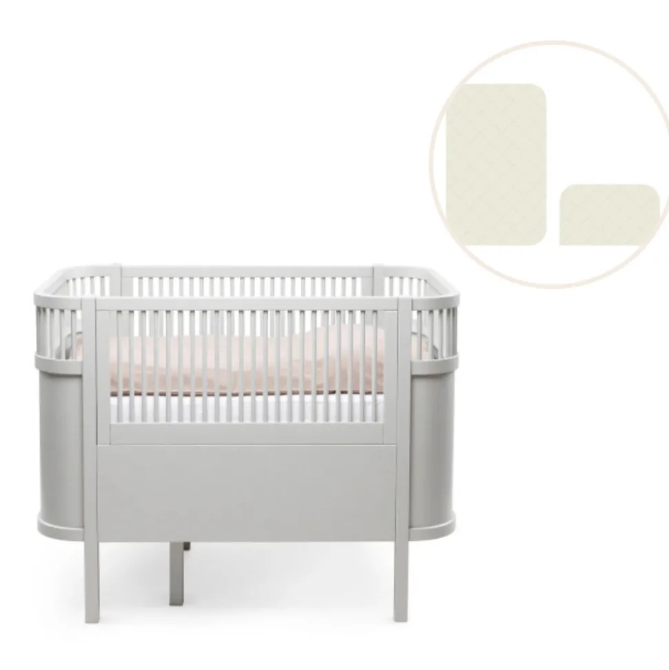 Sebra Sengen Baby & Jr. vokser og udvikler sig sammen med dit barn, og giver trygge rammer så barnet kan sover trygt og godt. Et stykke dansk designhistorie og en tryg og sikker udtræksseng til baby og junior. Sebra Sengen kan anvendes fra nyfødt hvor sengens bund er hævet til midten, således baby i de første måneder er lettere at løfte op fra sengen og lægge i sengen. Når baby vokser til en lille spilop der begynder at gøre tegn til selv at kunne komme op i siddende eller kravlende position sænkes sengens bund. Sebra Madrassen, Harmony, Baby & Jr. er en kvalitetsspecialmadras med sublim liggekomfort, som passer til Sebra Sengen. Brug det største madrasstykke i den første periode og tilføj det lille tillægsstykke til fodenden af sengen, når sengen trækkes ud til juniorseng.