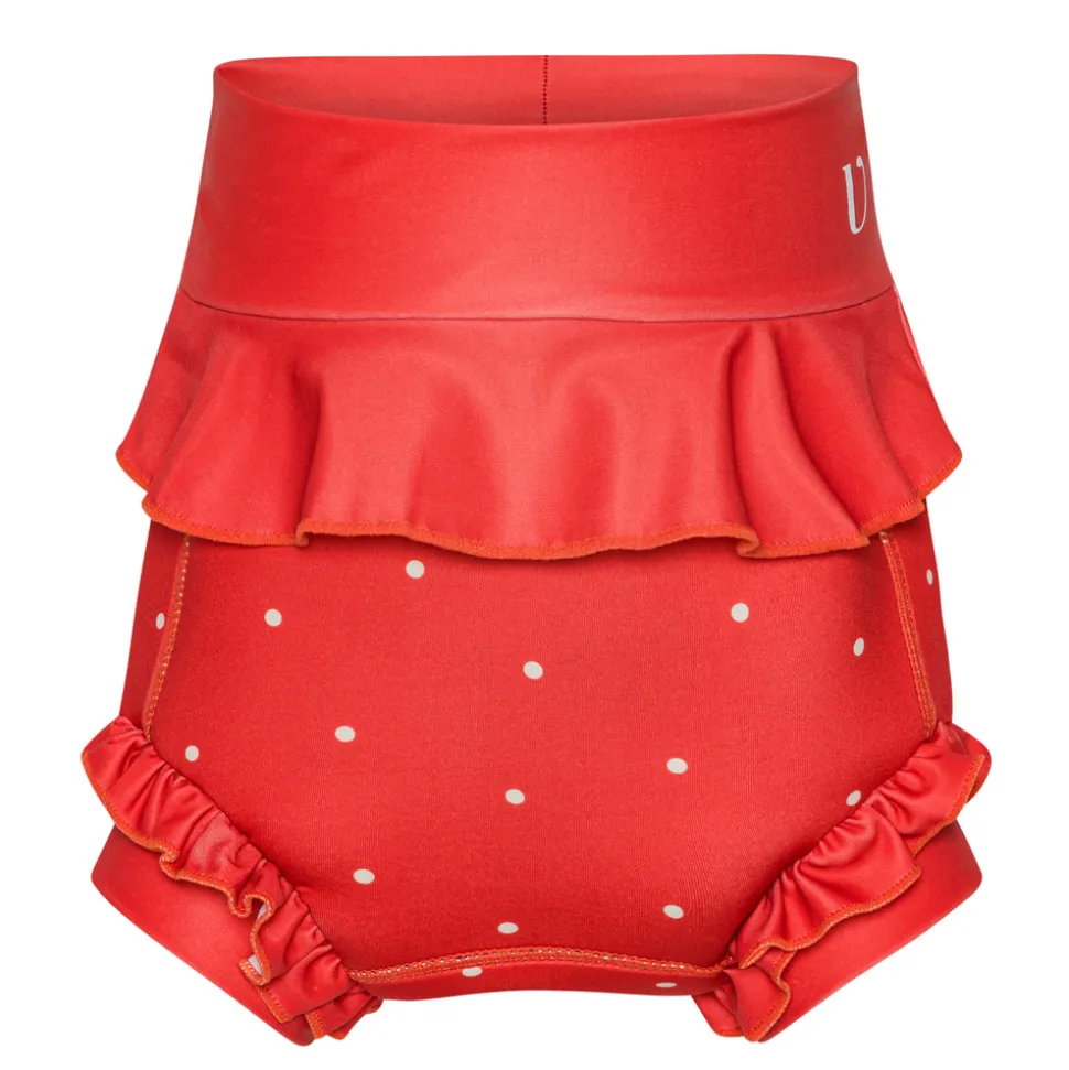 Tætsiddende høj talje og ribkanter ved benene sikrer, at ble-badebuksen sidder tæt til huden.