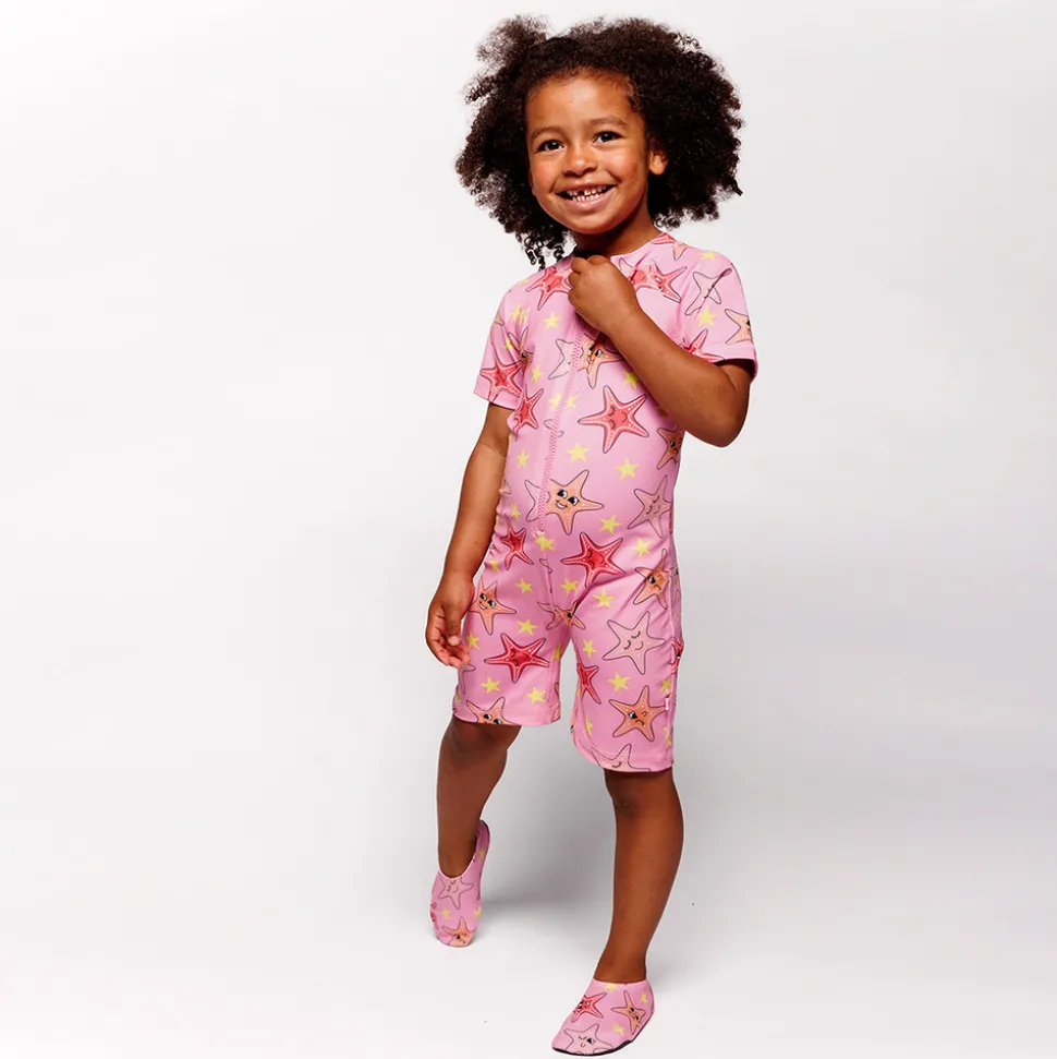 Udforsk sommerstemningen med dette charmerende print af søde søstjerner og muslingeskaller, perfekt til solrige stranddage. Småfolks print er tegnet med fokus på glade farver, detaljer og historier.