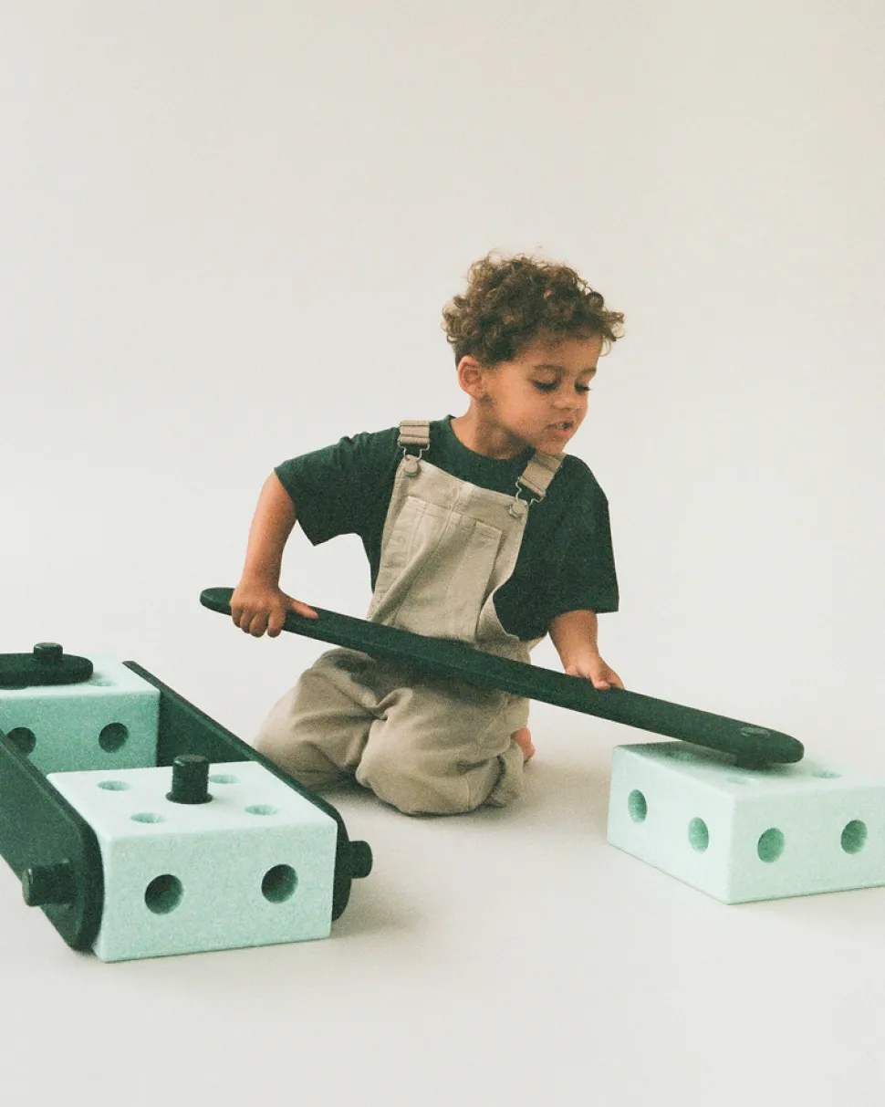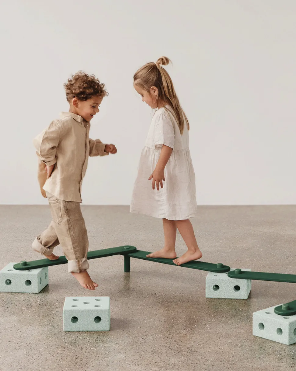 Byg. Balancér. Med dette sæt af bomme og klodser kan børn designe deres egne balancebaner og udfordre deres koordination og motorik med mindst 10 forskellige baner på forskellige niveauer — og flere at udforske! Balancebommene er lavet af birketræ og bejdset med naturlige linolier, hvilket giver et holdbart design, der passer ind i ethvert hjem. Med utallige måder at bygge på er dette sæt perfekt til at fremme fantasifuld leg og aktiv læring, og når balancebanen ikke er i brug, kan den bygges om til smarte møbler, som en hylde, en bænk eller endda et lille bord — et sjovt og funktionelt legetøj til børn fra 3 år og op!