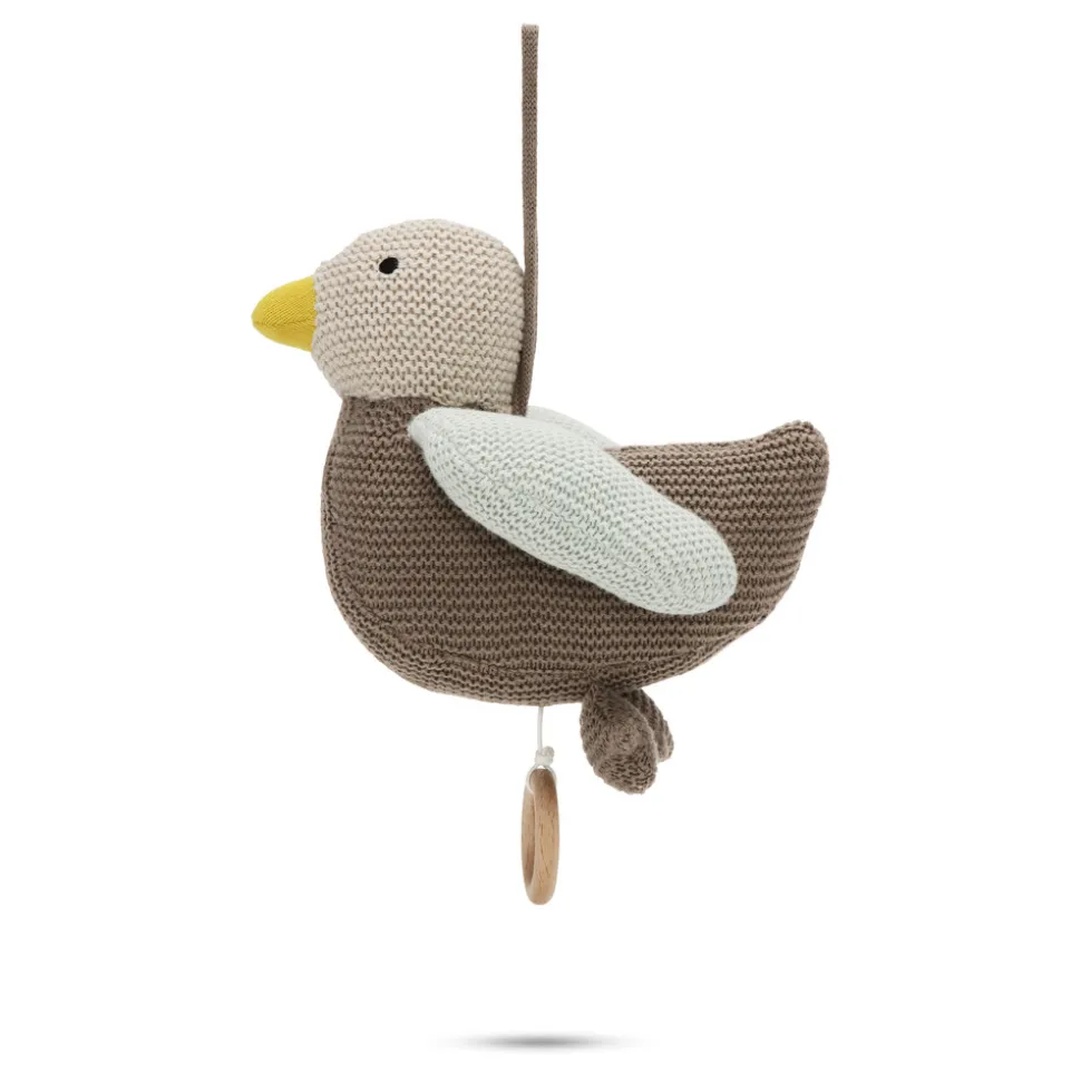 Little Duckling er en sød og blød økologisk strikket krammebamse med rolig musik. Little Duckling er en kær og uimodståelig krammeven, og med sine dinglende ben og søde smil, bliver Little Duckling hurtigt en af barnets yndlings bamser.