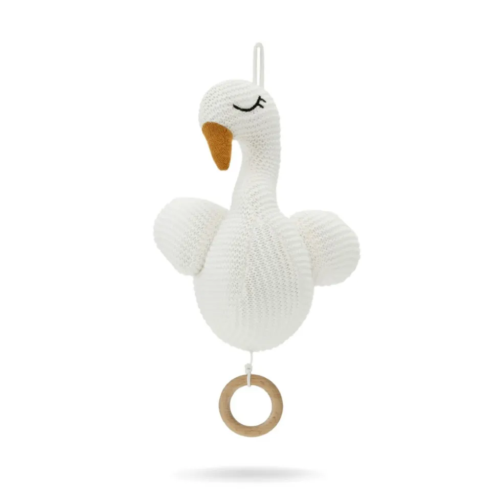 Little Swan er en sød og blød økologisk strikket krammebamse med rolig musik. Little Swan er en kær og uimodståelig krammeven, og med sine dinglende ben og søde smil, bliver Little Swan hurtigt en af barnets yndlings bamser.