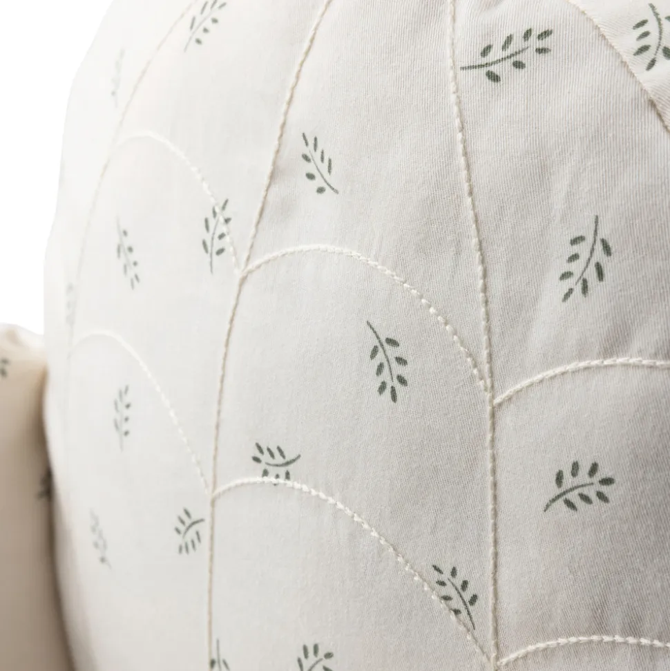 Barnevognspuden fra Sebra giver dit barn støtte og komfort, når det sidder oprejst i barnevognen og følger med på turen. De to sidestykker kan vendes afhængigt af barnets størrelse, hvilket gør det muligt at bruge barnevognspuden i længere tid. Designet, kaldet “Sophora Leaves,” er et fint bladprint på en lys beige bundfarve, der kan gå i arv mellem søskende.