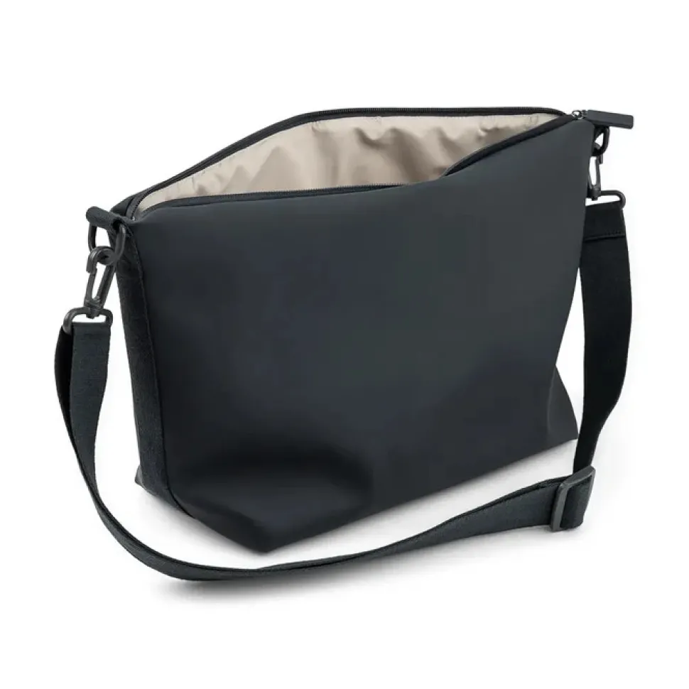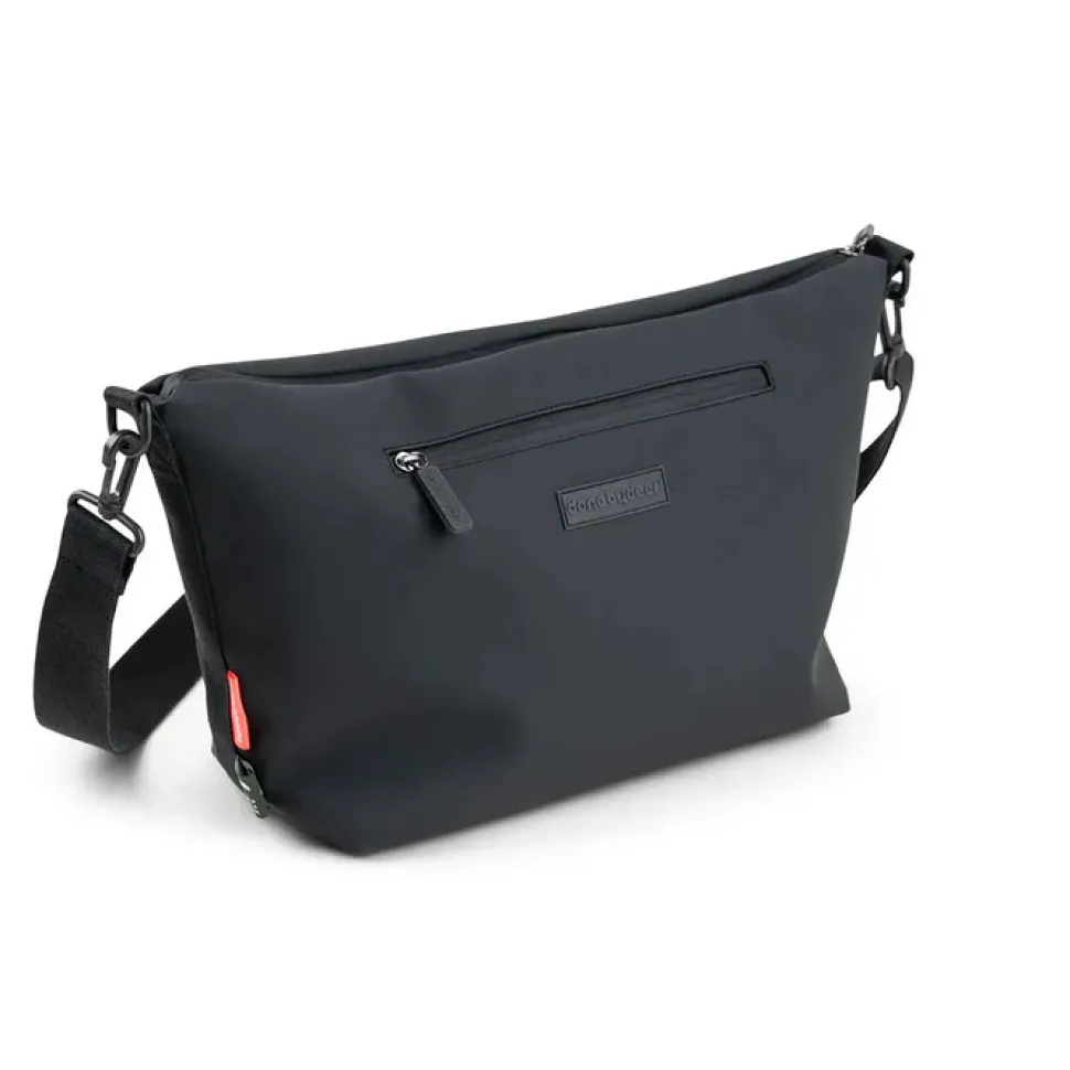 Praktisk sort barnevognstaske til dine vigtigste babyting på fartenSæt tasken fast på barnevognens håndtag ved hjælp af de medfølgende barnevognskrogeEt stort rum med fire indvendige og en udvendig lommeEn fleksibel, bred skulderrem gør tasken nem at justereSlidstærk og vandafvisende overflade44 x 14 x H 25 cm. | 10LStof: 100 % genbrugspolyester med PU-belægning. For: 100 % genbrugspolyester.Der blev brugt 18 genbrugte PET-flasker til fremstilling af dette produkt.