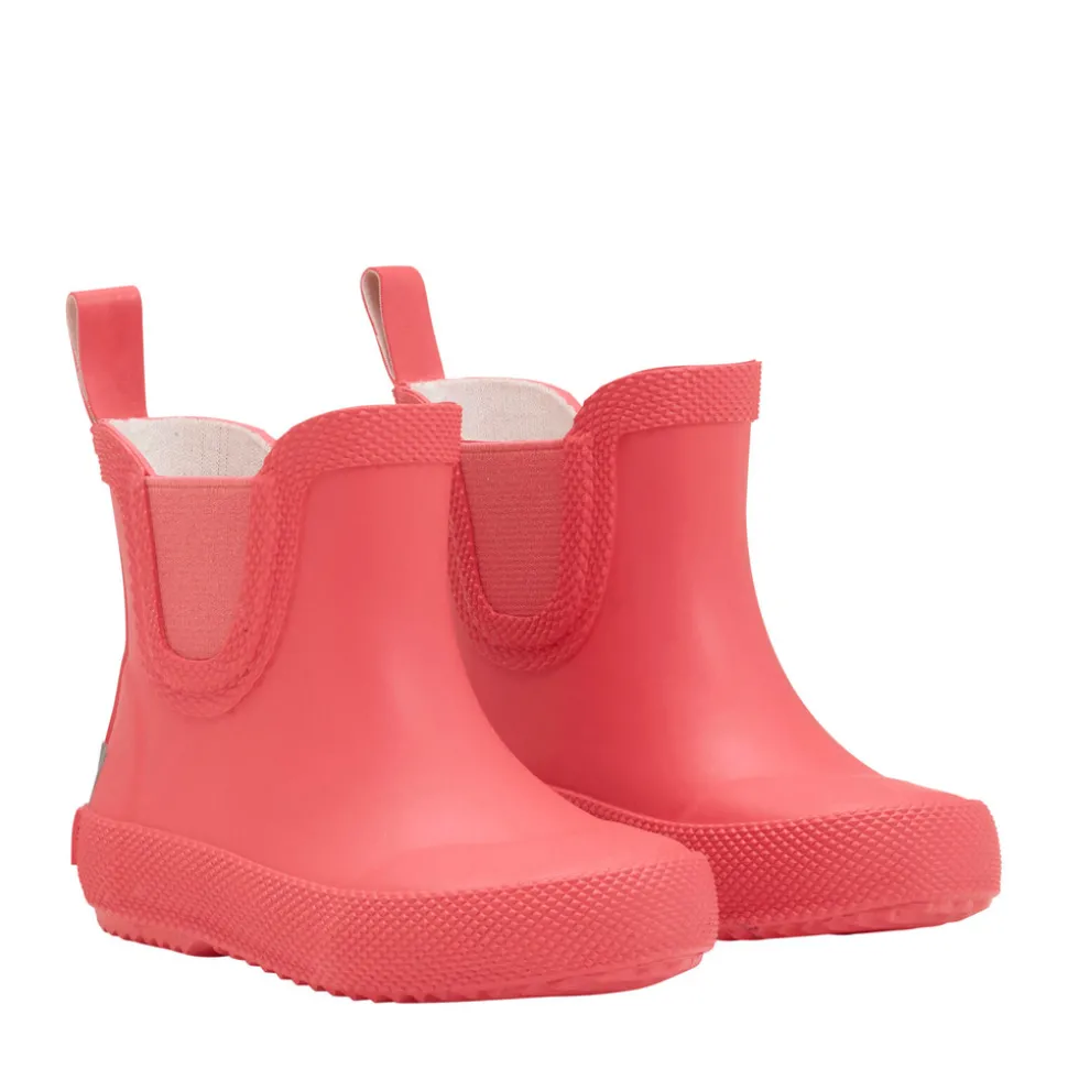 Ensfarvede korte gummistøvler med smart detalje på siden. Støvlerne er af kvalitets naturgummi og har CeLaVi reflekslogo og refleksstribe på hælen for bedre synlighed i mørket. Da gummistøvler til børn ofte bliver brugt flere timer ad gangen, er det vigtig for CeLaVi, at de er komfortable og funktionelle. Modellen er smallere i hælen, for at børnene bedre vil kunne bevæge sig, når de går, løber og leger. For at støvlen sidder optimalt på barnets fod, skal den som tommelfingerregel være fodens længde plus en finger (1-1,5 cm), så der er plads til storetåen og en tyk strømpe.