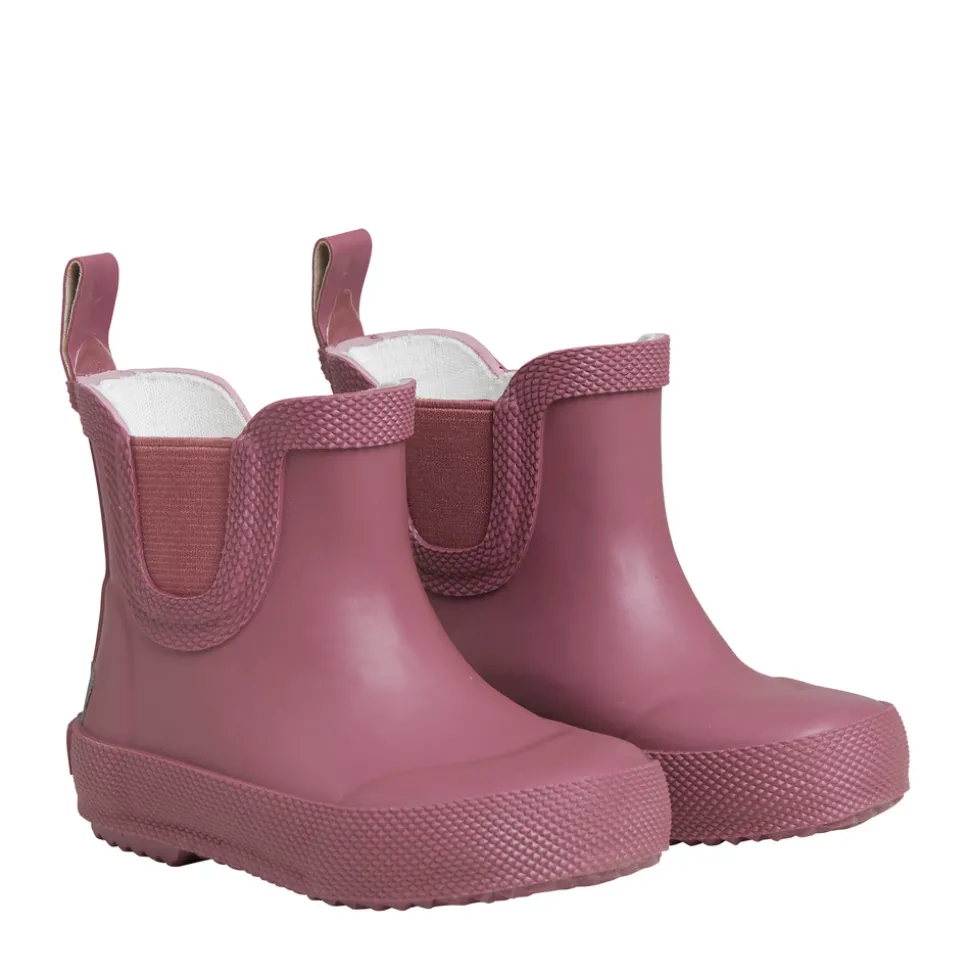 Ensfarvede korte gummistøvler med smart detalje på siden. Støvlerne er af kvalitets naturgummi og har CeLaVi reflekslogo og refleksstribe på hælen for bedre synlighed i mørket. Da gummistøvler til børn ofte bliver brugt flere timer ad gangen, er det vigtig for CeLaVi, at de er komfortable og funktionelle. Modellen er smallere i hælen, for at børnene bedre vil kunne bevæge sig, når de går, løber og leger. For at støvlen sidder optimalt på barnets fod, skal den som tommelfingerregel være fodens længde plus en finger (1-1,5 cm), så der er plads til storetåen og en tyk strømpe.