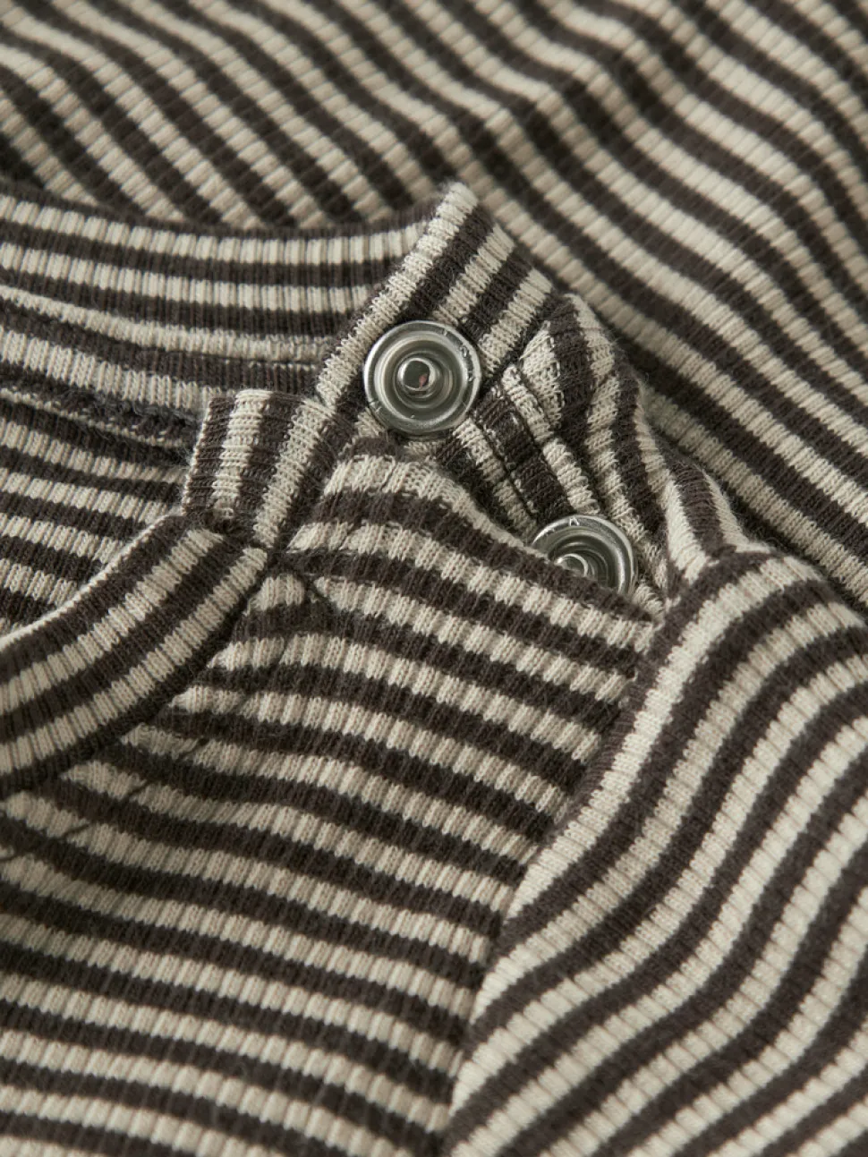 Friske dit barns garderobe op med bløde og praktiske bodysuits, der er perfekte til brug hele året rundt. Ribstrik har et lodret, stribet mønster og god elasticitet, der giver en behagelig fornemmelse og et tidløst look.