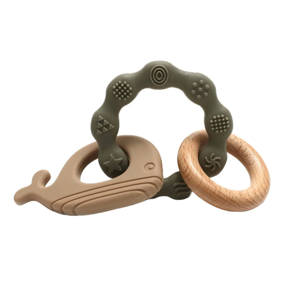 Bideranglen har forskellige konturer og blødhed som gør det behageligt for barnet at bide i og lege med.