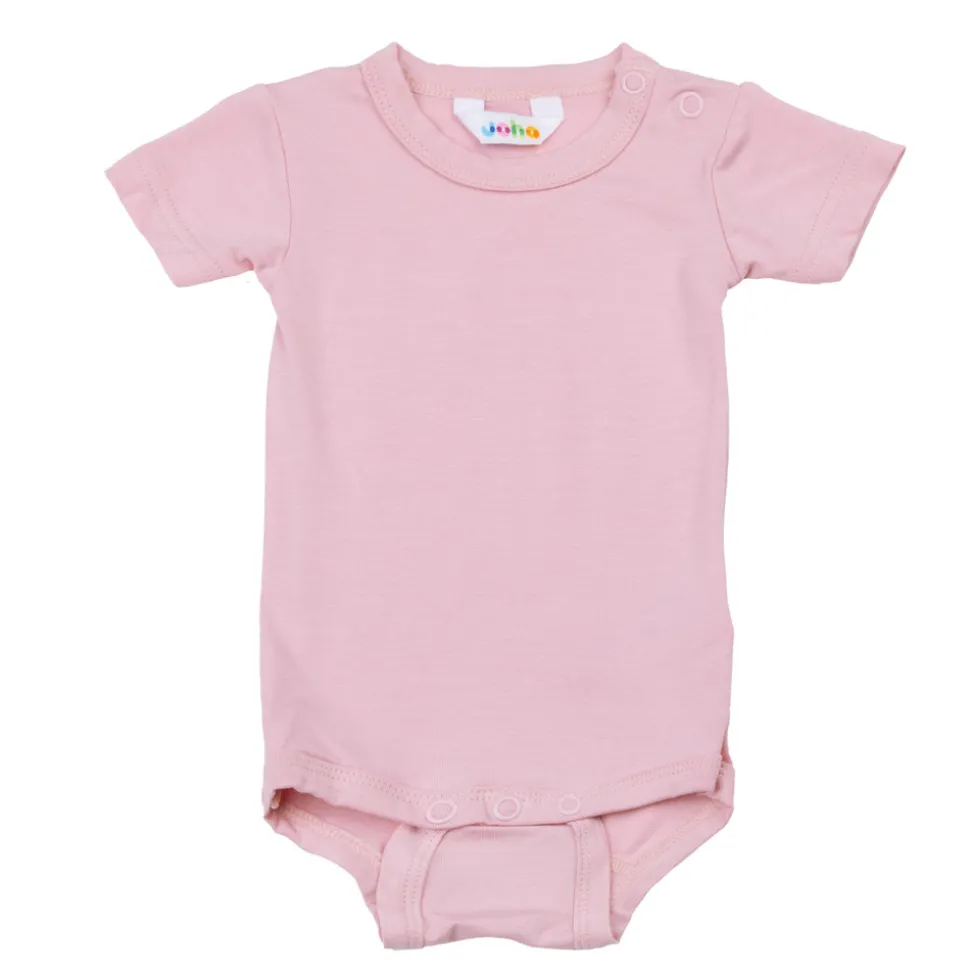 Trykknapper på den ene skulder samt mellem benene for en nemmere påklædning. En elastisk økologisk bambuskvalitet som er dejlig blød og lækker. Perfekt at bruge inderst.