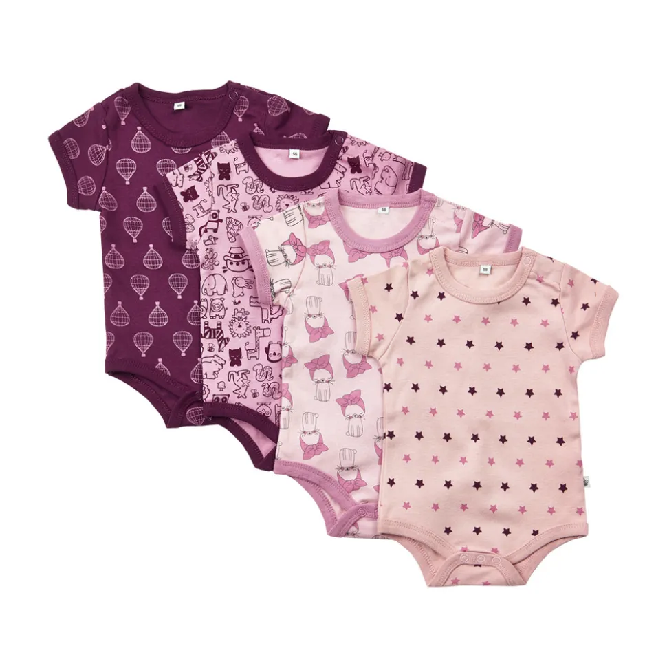 4 kortærmede bodystockings med flotte print.