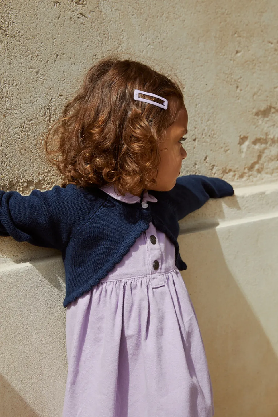 En yndig, let bolero med fin strik og en hjerteformet knap. Ideel til lag-på-lag og tilføjer et strejf af elegance til ethvert outfit. Boleroen er fremstillet af 100% økologisk bomuld.