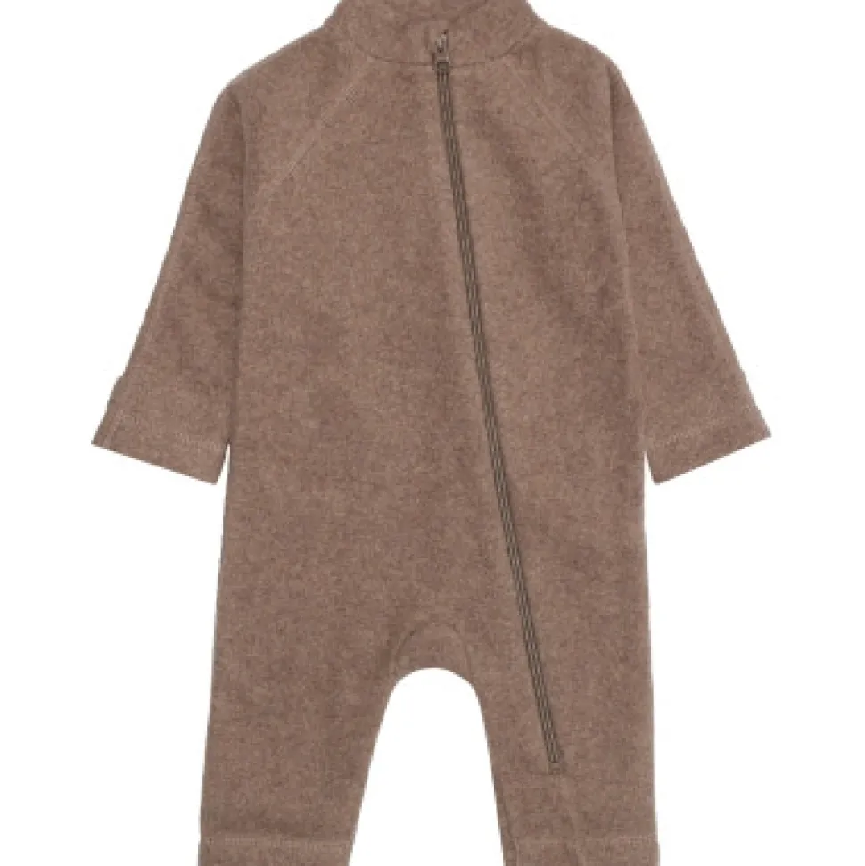 Bomuldsfleece babydragt fra Mikk-line. Denne bløde og lækre heldragt til nyfødte, spædbørn og tumlinger er lavet i en børstet kvalitet med en blanding af bomuld og polyester. Den er åndbar, kradser ikke, og den vil holde barnet dejligt varmt. Fleecedragten er også certificeret af OEKO-TEX® Standard 100, hvilket garanterer, at den er uden sundhedsskadelig kemi.