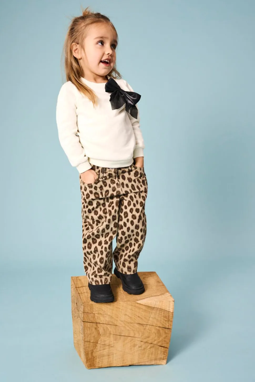 Hvid sweat med en stor sort sløjfe på fronten, for at give et mere feminint udtryk.