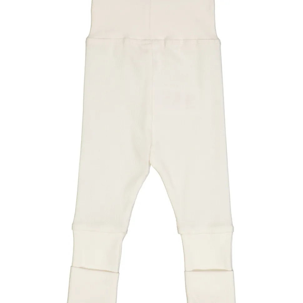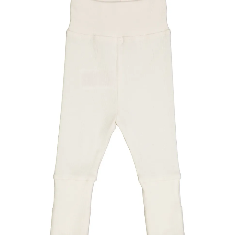 Dejlig bløde bukser til de mindste. Bukserne har en bred og elastisk kant foroven som kan foldes efter behov og stil. I ben-afslutningen er der foldbare fødder, så du kan folde bukserne så de små fødder ikke bliver kolde. Bukserne er lavet fra str. 44-74 så de passer meget små børn. Fremstillet i dejlig blød bomulds-rib med elastan for optimal pasform (GOTS Organic Certified by Ecocert Greenlife Lic. No. 152033). Produktet er GOTS organic- certificeret, hvilket betyder at bomulden er certificeret økologisk, og at der i alle andre processer som farvning, strikning og syning er taget de strengeste hensyn til miljøet. GOTS er internationalt anerkendt som den førende standard for forarbejdning af tekstiler af økologisk bomuld. Derudover tages der også hensyn til arbejdsforholdene, hos dem der producerer tøjet. Økologisk bomuld 95%, Elastan 5%