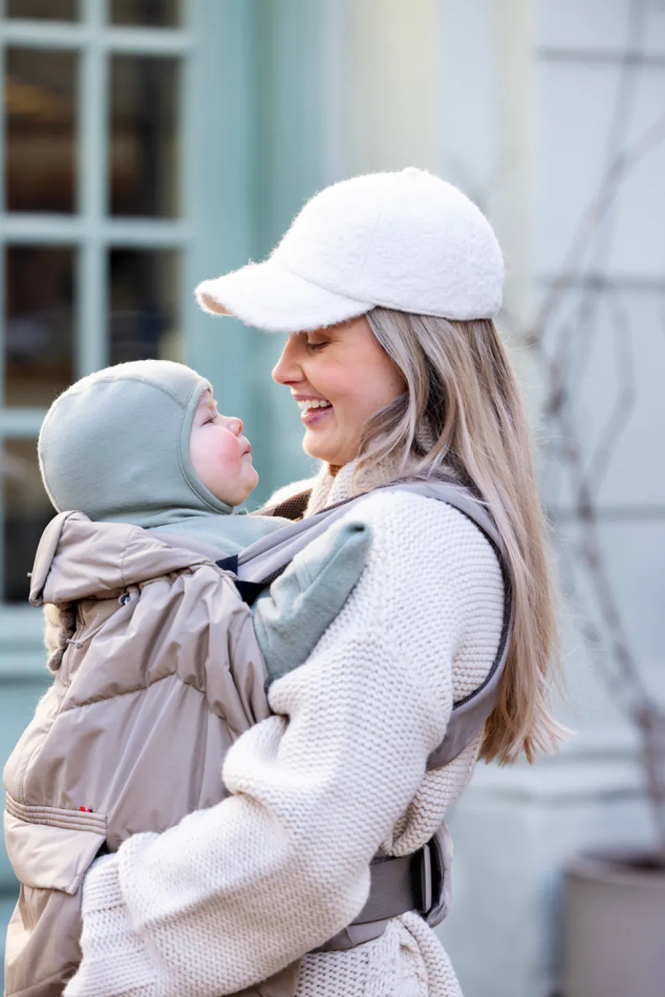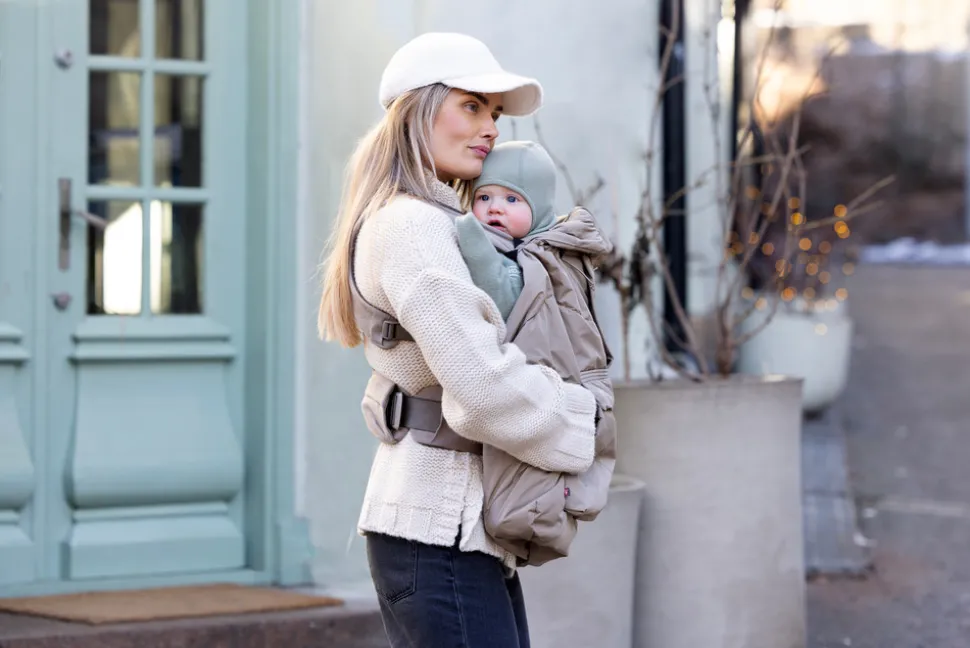 Designet til både indad- og udadbæring og fungerer også godt i en barnevogn eller når du ammer udendørs – det omslutter dit barn i blød, isoleret komfort, uanset hvor du går hen.