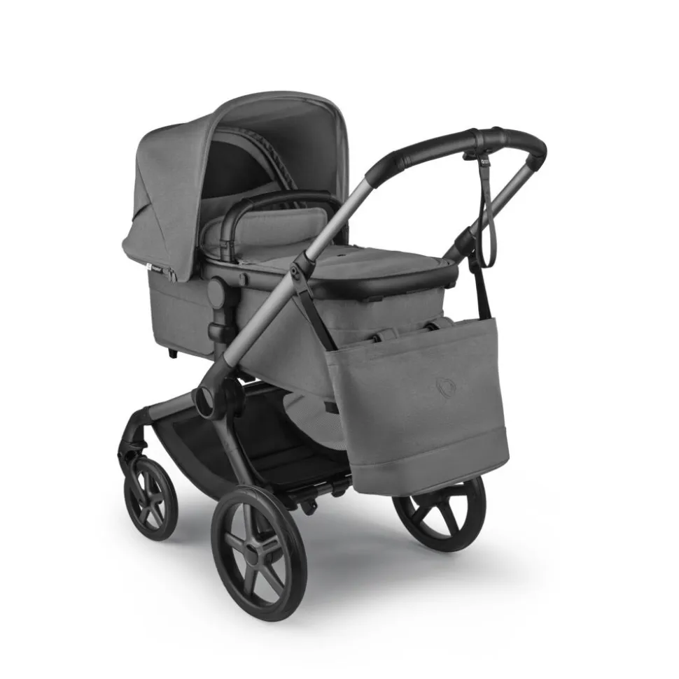 Praktisk og rummelig pusletaske fra Bugaboo, som er lige til at hænge på din Bugaboo vogn – dog hver opmærksom på vægten. Pusletasken kan rumme meget da den er dejlig stor og indeholder mange detaljer som gør den fantastisk at have med sig. Tasken er vandafvisende og lynlåsen er lavet så den er vandtæt, så selv på regnvejrsdage kan pusletasken hænge på vognen. Bunden er fast så tasken kan nemt stå på jorden/gulvet uden den falder sammen. Indvendigt i det store rum er der mindre rum for nem opdeling af tøj, bleer, klude, sutter, mad og hvad der ellers pakkes til turen. Der er blandt andet en isolerende flaskeholder, og der medfølger pusleunderlag, 2 mindre mesh tasker så der kan opdeles rent og beskidt, og der medfølger også en mindre isolerende taske som er praktisk til lidt mad til turen. Det smarte denne pusletaske er at den ikke kun er god til pusletiden, men du får også en taske der kan bruges efterfølgende – måske til en lille weekend tur.