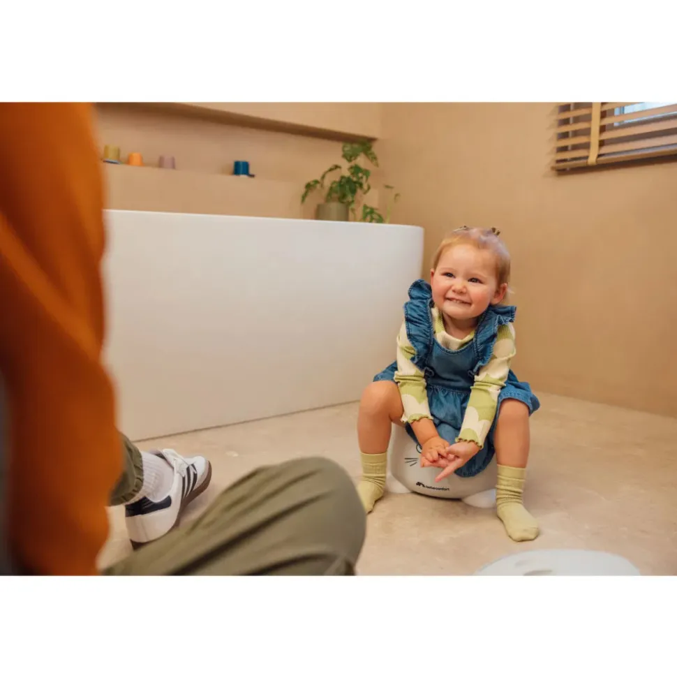 Gør pottetræningen til en tryg og hyggelig oplevelse med Bebeconfort Comfort Potty. Det ergonomiske ryglæn og det bløde sæde giver dit barn den støtte og komfort, de har brug for, mens det søde dyredesign gør det hele lidt sjovere. Den aftagelige inderpotte med stænkbeskyttelse gør rengøringen nem og hurtig, og de skridsikre fødder sørger for, at potten står sikkert – perfekt til de første selvstændige toiletbesøg.