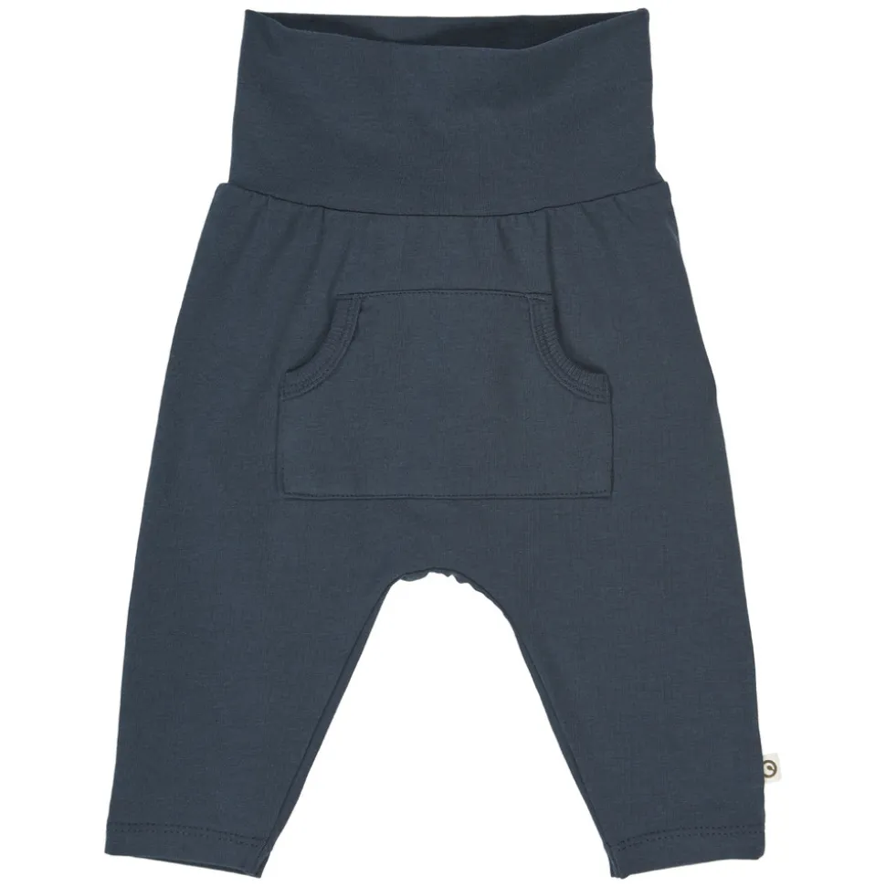 Disse skønne bukser er designet med en bred, foldbar kant i taljen, som sikrer en blød og behagelig pasform uden at stramme om maven – perfekt til aktive børn. Foran har bukserne en stor kængurulomme, der både er praktisk og giver et afslappet udtryk.