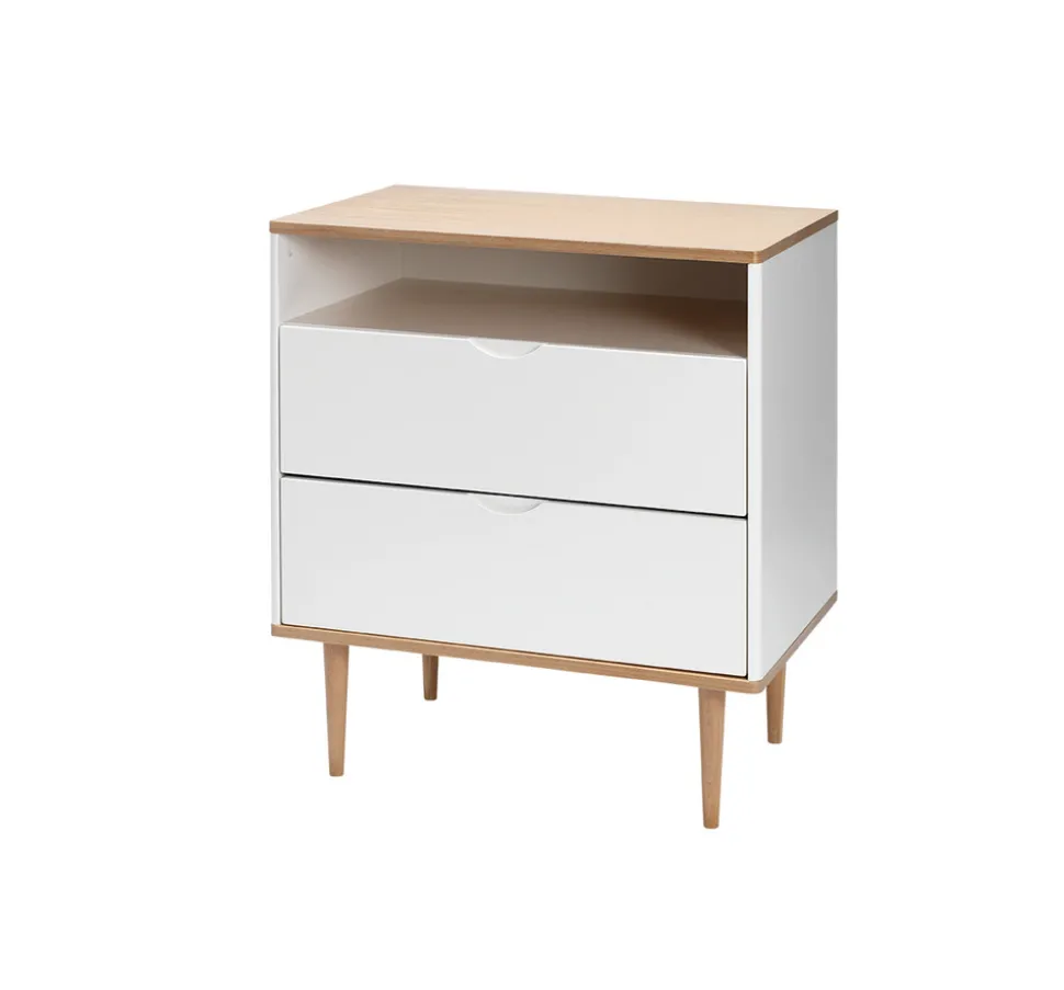 Mere end bare at pusleDesignet på Curve puslekommoden er gennemtænkt for at gøre det nemt når der skal pusles. Det åbne rum øverst er let tilgængeligt, og giver dig nem og hurtig tilgang til de mest essentielle ting man gerne vil have indenfor rækkevide. Curve har 2 store skuffer som kan rumme meget, og med udfræsede greb er de nemme at åbne. Puslepladen monteres nemt uden skruer ovenpå kommoden, og når pusletiden er forbi er pladen lige til at fjerne, og så har man stadig en kommode til opbevaring af tøjet – eller måske legetøj. Curve vil uden tvivl også løfte ethvert børneværelses naturlige stil med sine håndværksmæssige detaljer. Fra de udfræsede forførende greb i de hvidmalet fronter til de fine egetræslister og smukke egetræsben skabes der er nutidigt nordisk look.