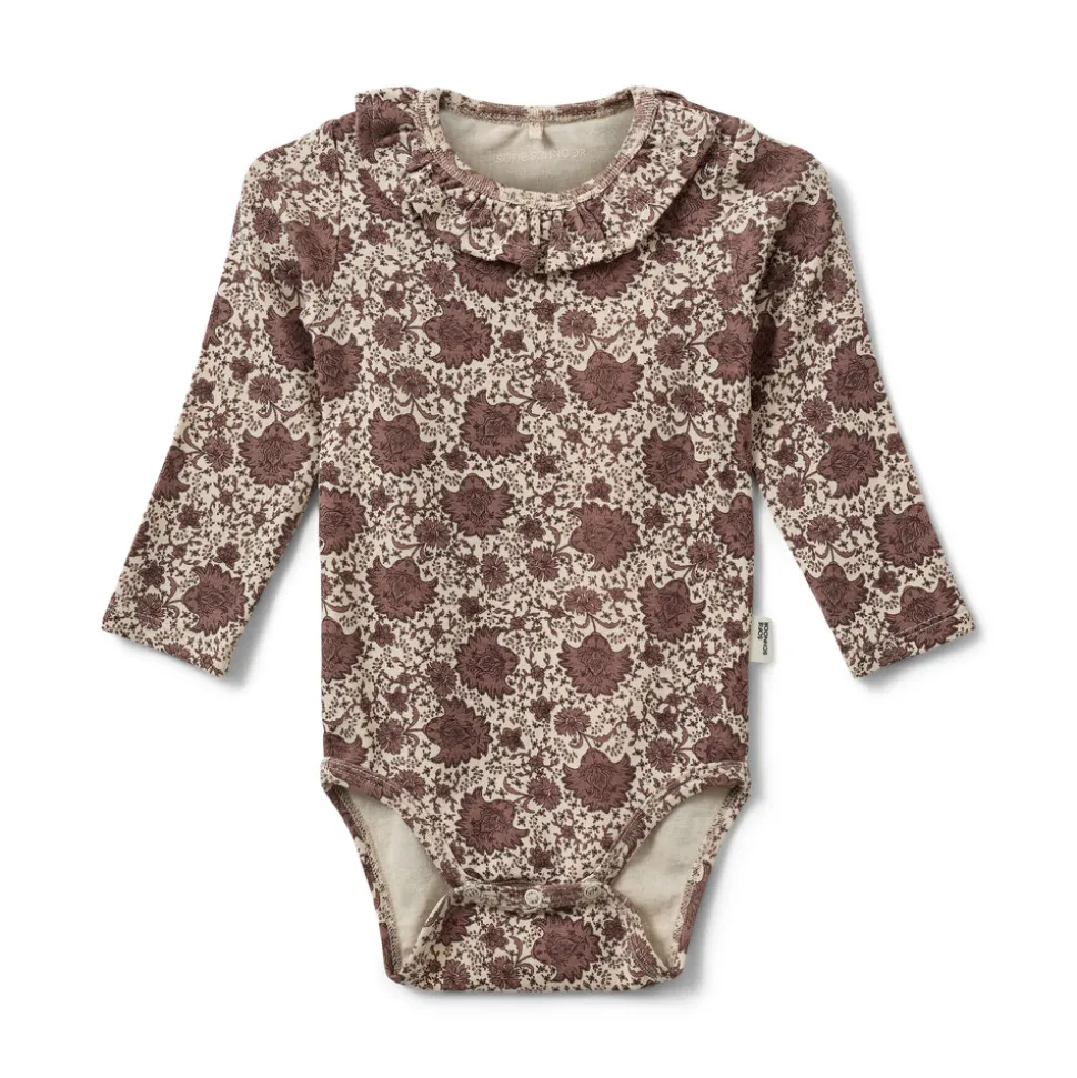 Dicte Body fra Petit by Sofie Schnoor er en smuk og komfortabel langærmet body, designet med omtanke for både stil og funktionalitet. Den er fremstillet i en blød bomuldsblanding, der føles behagelig mod barnets hud, og har fine detaljer som flæser ved skuldrene.