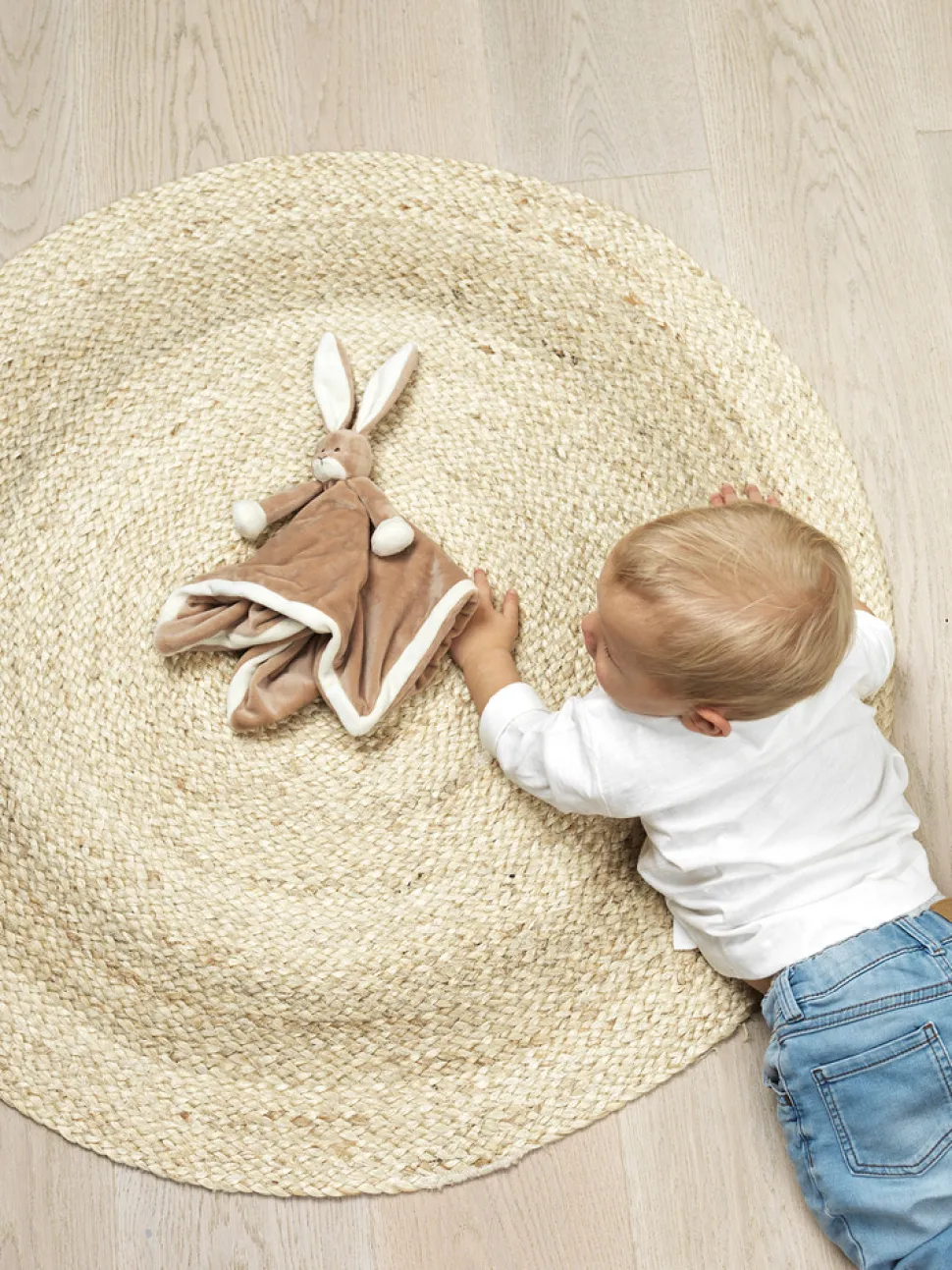 Nusseklud – en verden af kærlighed. Denne bløde nusseklud er formet som en sød kanin. Den har et sødt hoved med lange ører og bløde arme, med en fin kant i samme lyse farve som poterne. En herlig ven at have med på tur, kramme med når man er ked af det, og med i seng når det er sove tid. Nusseklude er en god følgesvend til små børn. Kan maskinvaskes ved 40 grader. Børnesikker og testet til børn fra 0 måneder. Måler 35 x 35 cm.