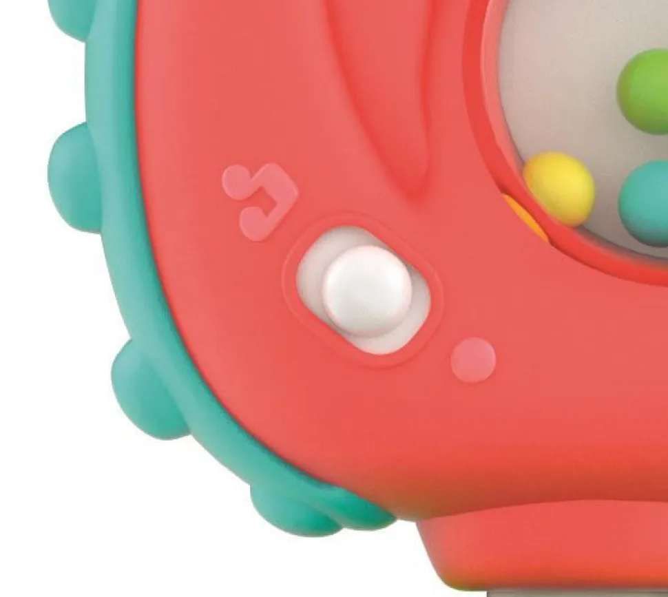 Interaktiv Dinosaur, med sugekop, perfekt til når der skal spises. Ryst ranglen for at høre sjove melodier og lydeffekter. Med maverangle, småpynt og forskellige overflader til at understøtte multisensorisk udvikling.