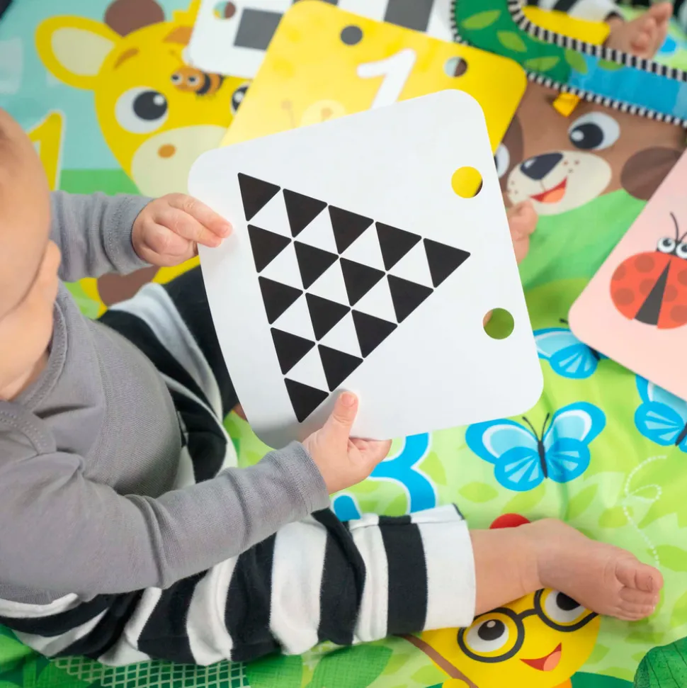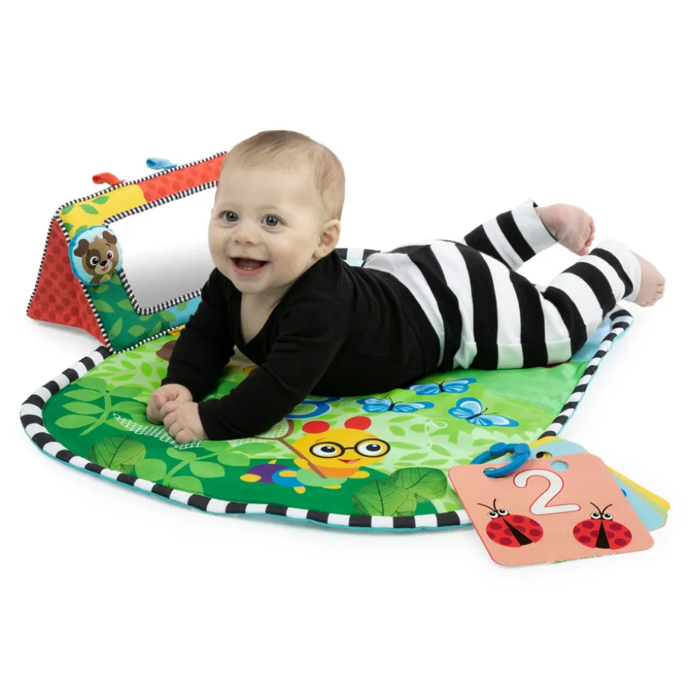 Baby Einstein Discovery Garden aktivitetstæppe og gulvspejl er en foldbar, multisensorisk legemåtte, der giver babyer 3 måder at lege på de kan ligge på maven, sidde op, eller måtten kan tages med på farten.