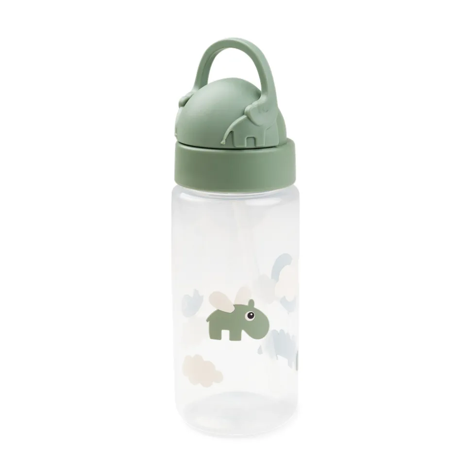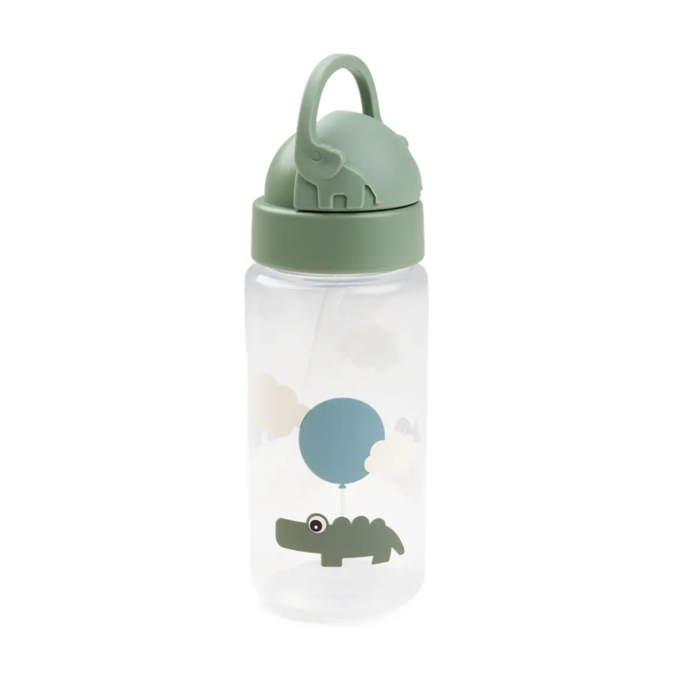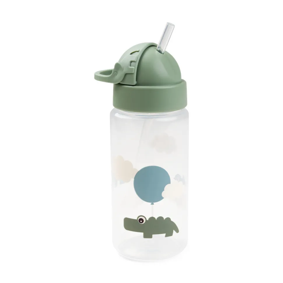 Den søde Happy clouds drikkedunk med sugerør passer perfekt til ungernes rygsæk. Drikkeflasken har et smart sugerør, der kan gemmes i låget og forhindrer at væske spildes. Håndtaget hjælper de små hænder med at finde sugerøret frem igen. Den spildfrie børnedrikkeflaske er uundværlig på farten og gør det sjovt for barnet at drikke masser af vand. Et ekstra sugerør og mundstykke er inkluderet. Croco, Birdee og Ozzo pynter på drikkedunken i grønne og blå nuancer.