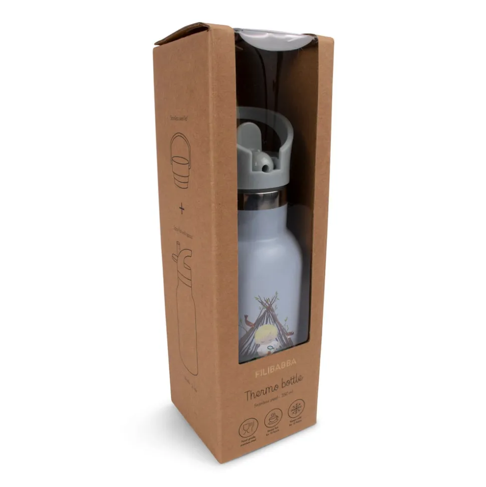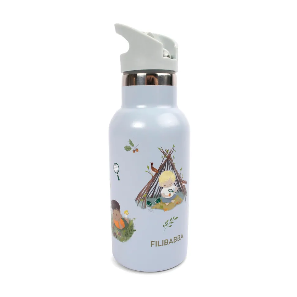 Uanset om du udforsker storbyjunglen eller strejfer gennem naturen, er en god vandflaske essentiel for store og små eventyrere. Filibabba drikkedunk med spændende motiv kommer med to forskellige låg: et klassisk skruelåg såvel som et låg med integreret sugerør.