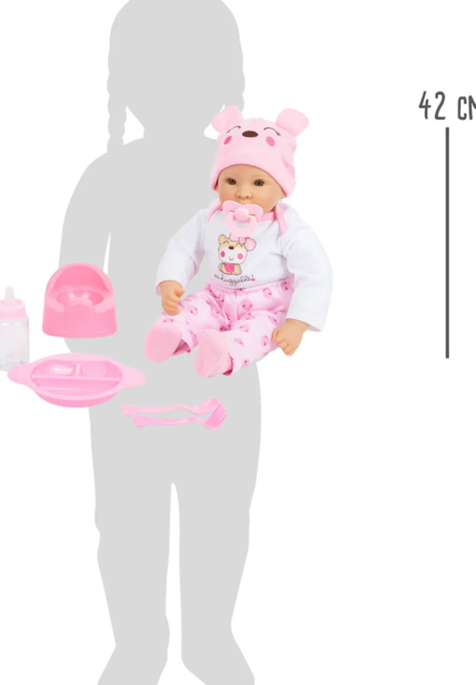 En drøm for alle dukkeforældre! Denne søde dukke er en rigtig berigelse til enhver dukkesamling. Mens de klæder deres dukke på, lærer dukkens forældre at klæde sig selv og kan prøve alt tilbehøret, mens de spiller rollespil. Dukken er også fantastisk til at putte med sin bløde krop. Denne dukke hører til i ethvert dukkesortiment!
