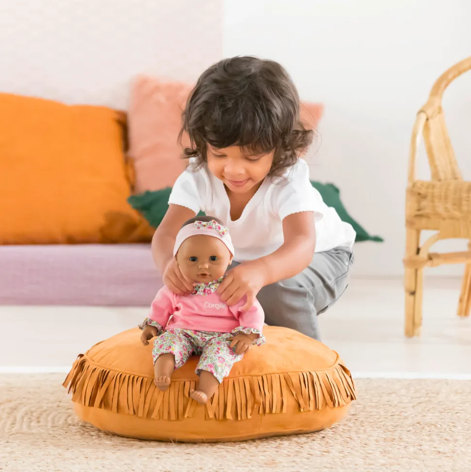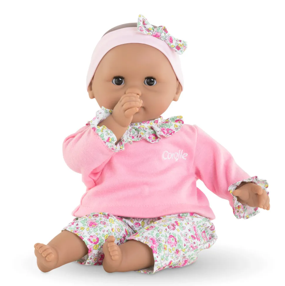 Denne yndige babydukke er ideel i størrelse til små hænder, hvilket gør det nemt for dit barn at holde og lege med hende. Dukken kan sutte på sin tommelfinger, hvilket tilføjer en ekstra dimension til legen og gør hende endnu mere realistisk. Hendes brune søvnige øjne lukker, når hun lægges ned, hvilket gør hende perfekt til puttetid og rolige stunder.