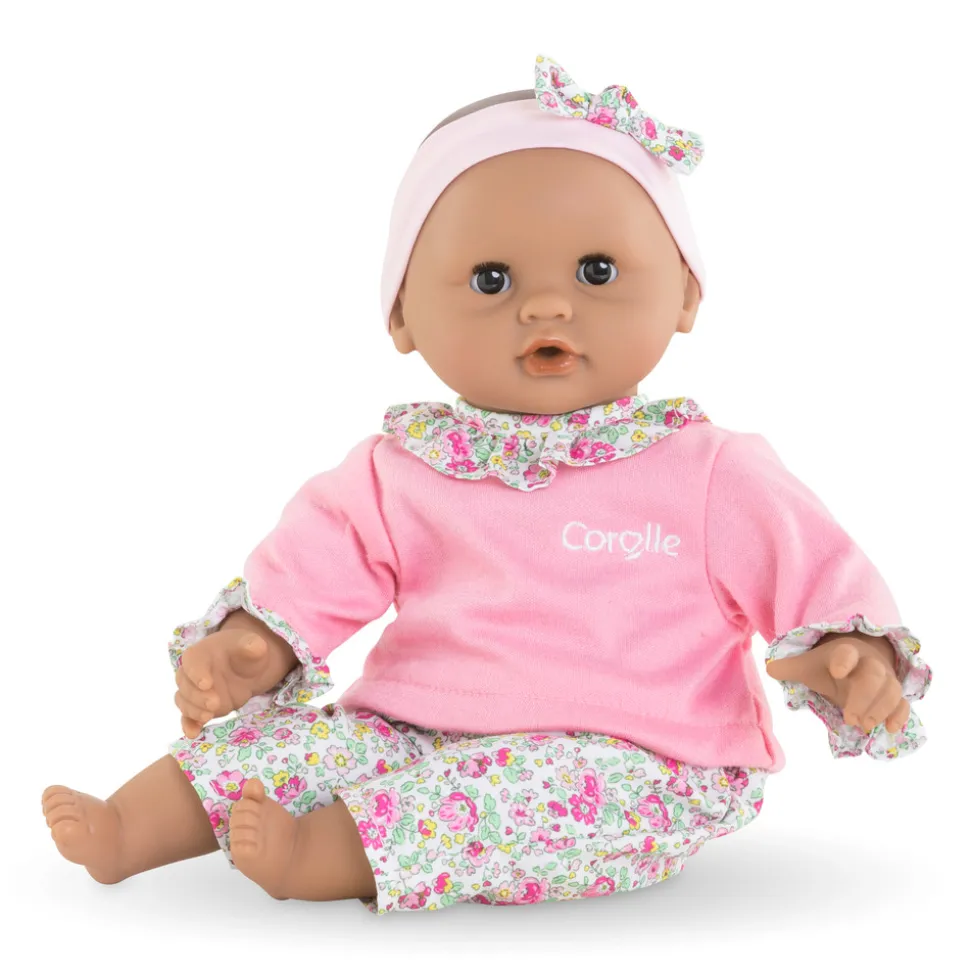 Ansigtet, armene og benene er lavet af blød vinyl, som har en let duft af vanilje. Denne behagelige duft gør legen endnu mere fornøjelig og autentisk. Dukken er iført blomstrede bukser, en top med flæsekant og et pandebånd med sløjfe, hvilket giver hende et sødt og stilfuldt udseende.